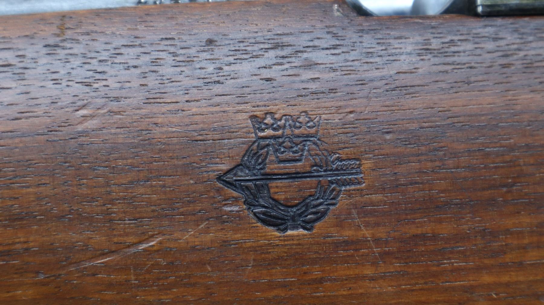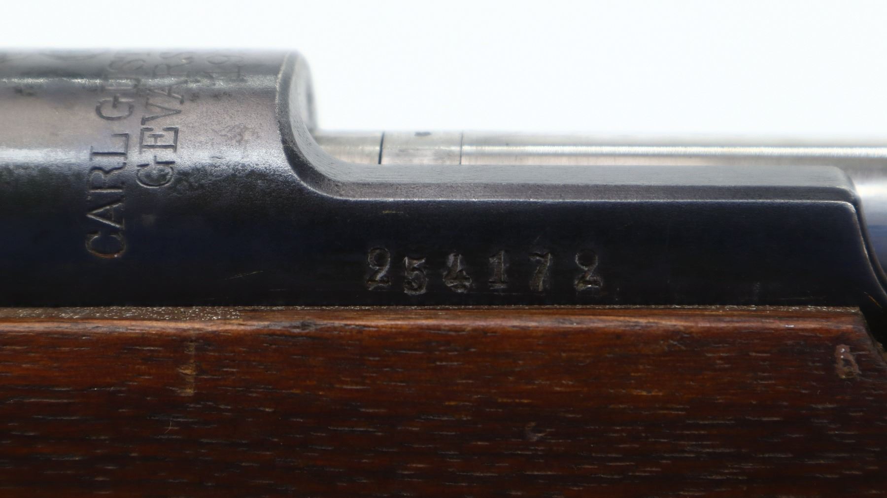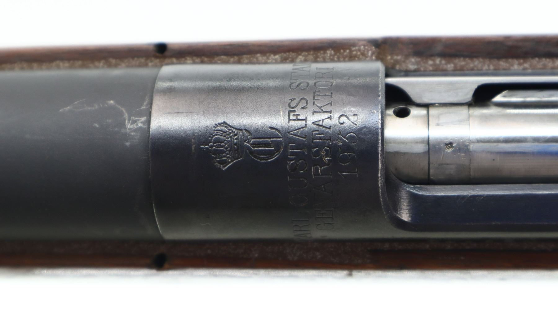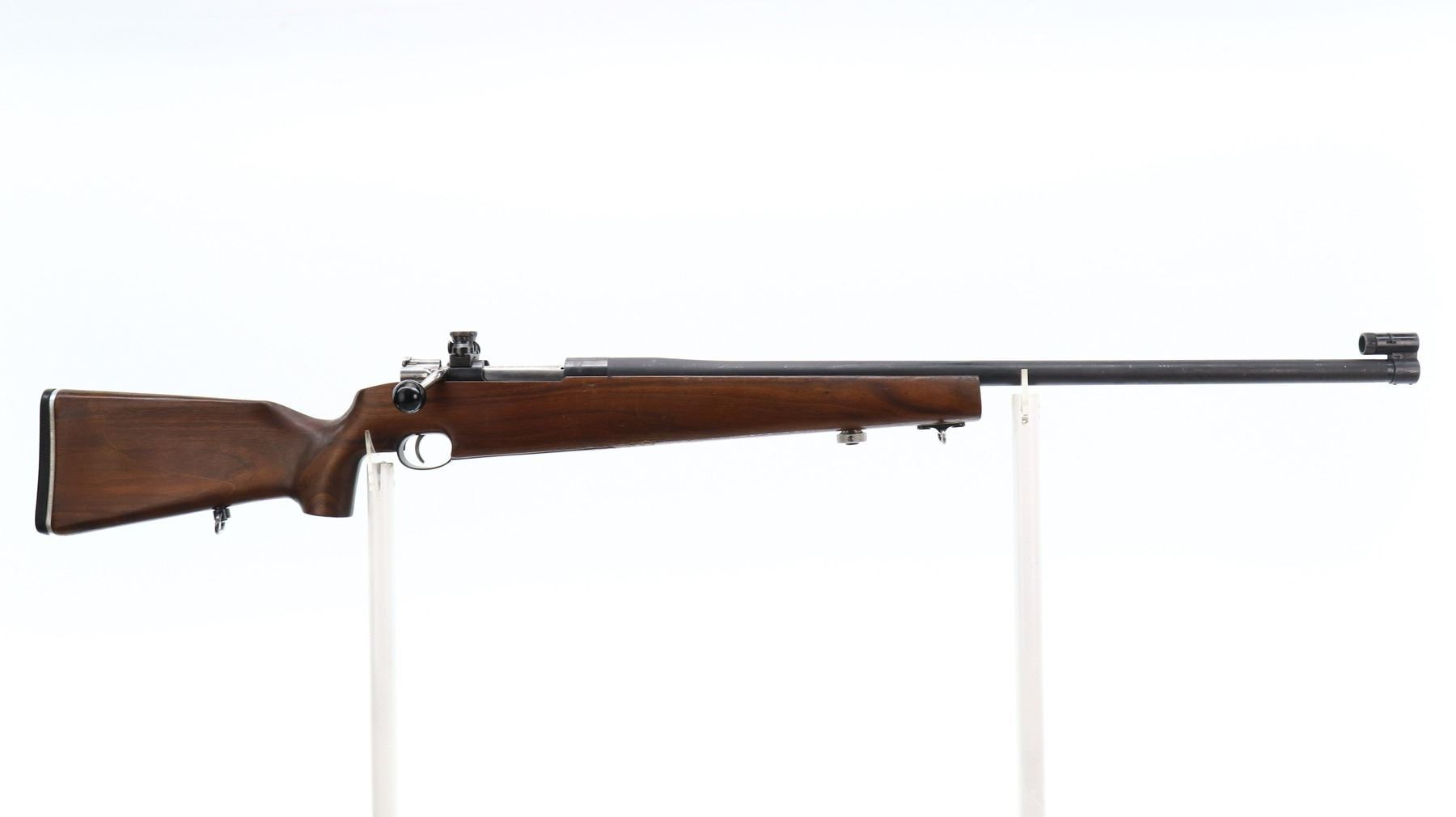7/10, SWEDISH MAUSER, MODEL: CUSTOM TARGET, CALIBER: 6.5X55 SWEDE, BORE IS GOOD, SHINY. MANUFACTURED 1932, NUMBERS MISMATCHED. GLOBE FRONT SIGHT WITH INSERT, ADJUSTABLE REAR PEEP SIGHT, HEAVY BARREL, SILVER BOLT WITH MODIFIED HANDLE AND LARGE BLACK POLYMER BOLT KNOB. ONE PIECE SMOOTH TARGET STYLE WOOD STOCK, PISTOL GRIP, GROOVED BLACK POLYMER BUTT PLATE, SLING SWIVELS, ALUMINUM RAIL INLET INTO FOR STOCK WITH ADJUSTABLE SWIVEL STUD. METAL FINISH SHOWS SOME SCRATCHES, HANDLING MARKS AND WEAR. STOCK SHOWS SOME MARKS, SCRATCHES AND WEAR., ACTION: BOLT ACTION RIFLE, BARREL LENGTH: 29", SERIAL # 254172, CONDITION: 7/10, CLASS: CANADIAN NON RESTRICTED