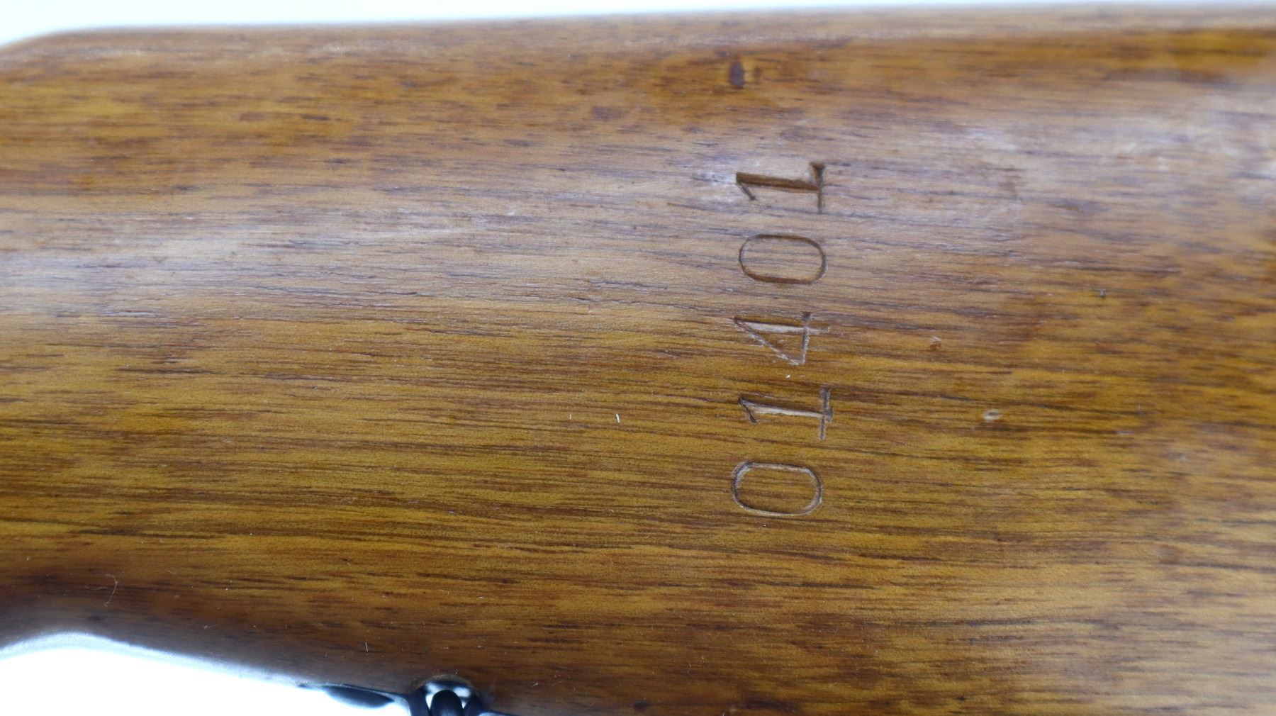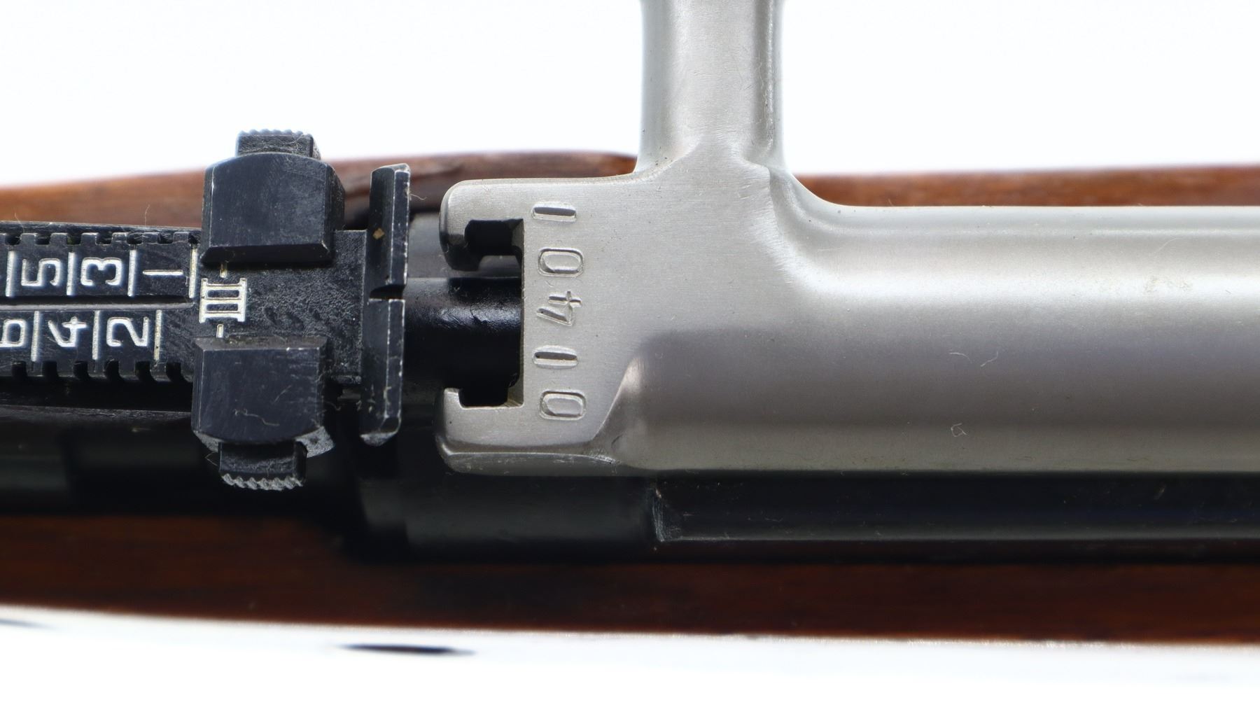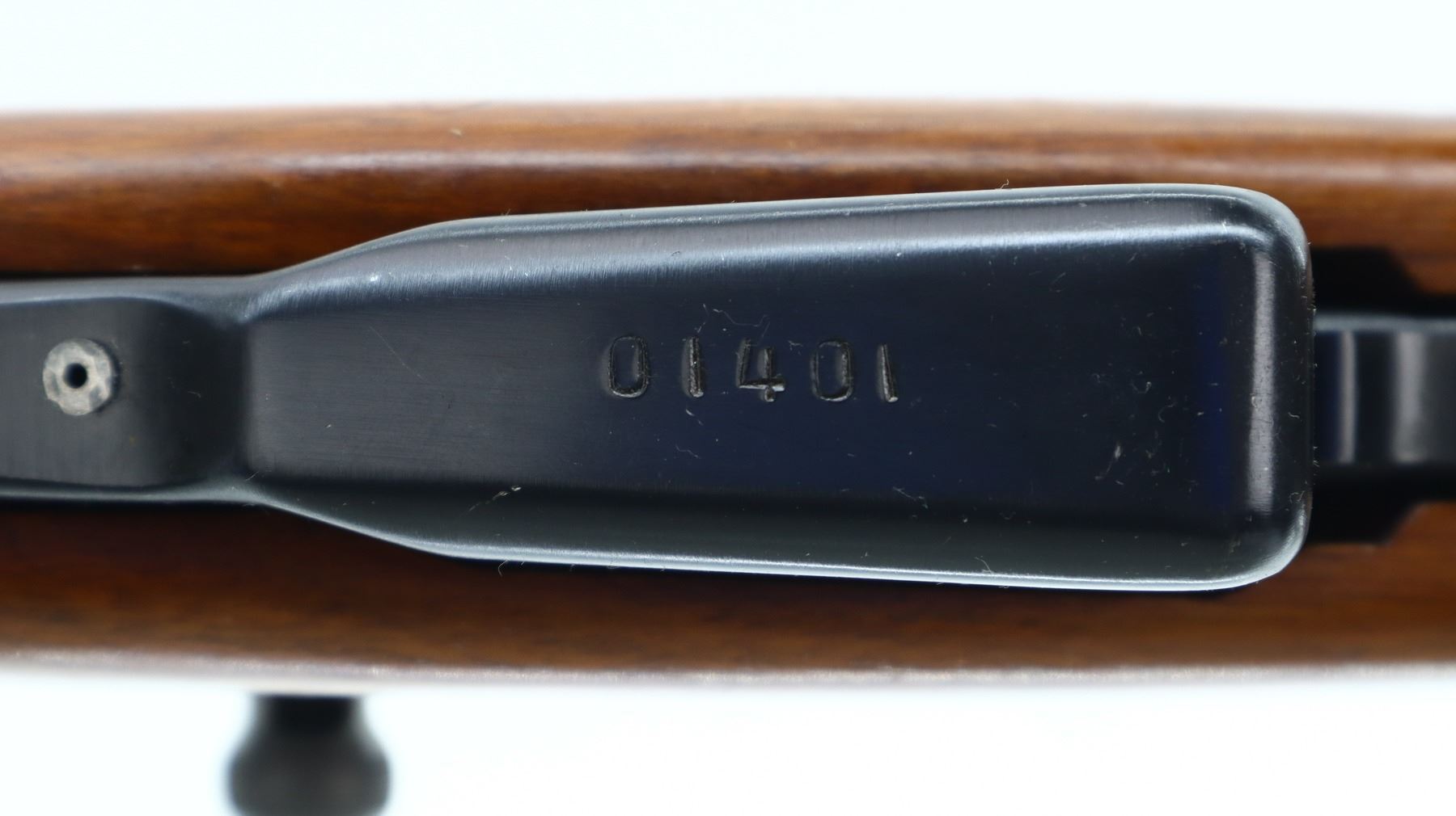 9/10, NORINCO, MODEL: SKS 56, CALIBER: 7.62 X 39, COMES WITH BOX, OILER, BORE IS EXCELLENT. ALL VISIBLE SERIAL #'S MATCH. POST FRONT SIGHT WITH HOOD AND RAMP. ADJUSTABLE U NOTCH REAR SIGHT. SILVER BOLT AND CARRIER. ONE PIECE CHECKERED BROWN POLYMER HANDGUARD. ONE PIECE SMOOTH WOOD STOCK. GROOVED FOREARM. PISTOL GRIP. SMOOTH STEEL BUTT PLATE WITH TRAP AND CLEANING KIT. SLING SWIVELS. CLEANING ROD. ATTACHED FOLDING CRUCIFORM BAYONET. METAL FINISH SHOWS SOME SCRATCHES AND HANDLING MARKS, STOCK SHOWS SOME MARKS AND SCRATCHES. ACTION: SEMI AUTOMATIC RIFLE, BARREL LENGTH: 20.5", SERIAL # 23101401, CONDITION: 9/10, CLASS: CANADIAN NON RESTRICTED