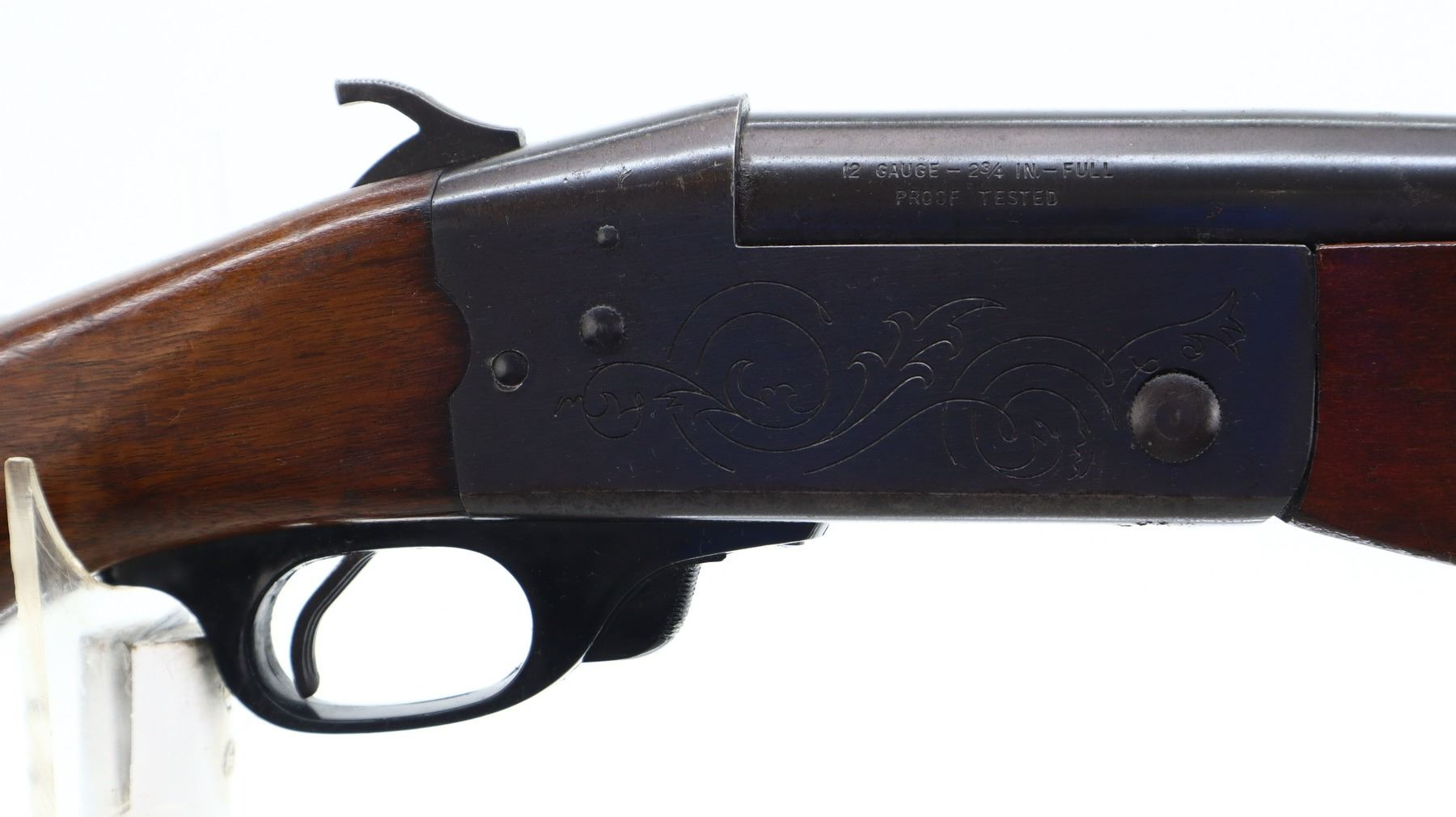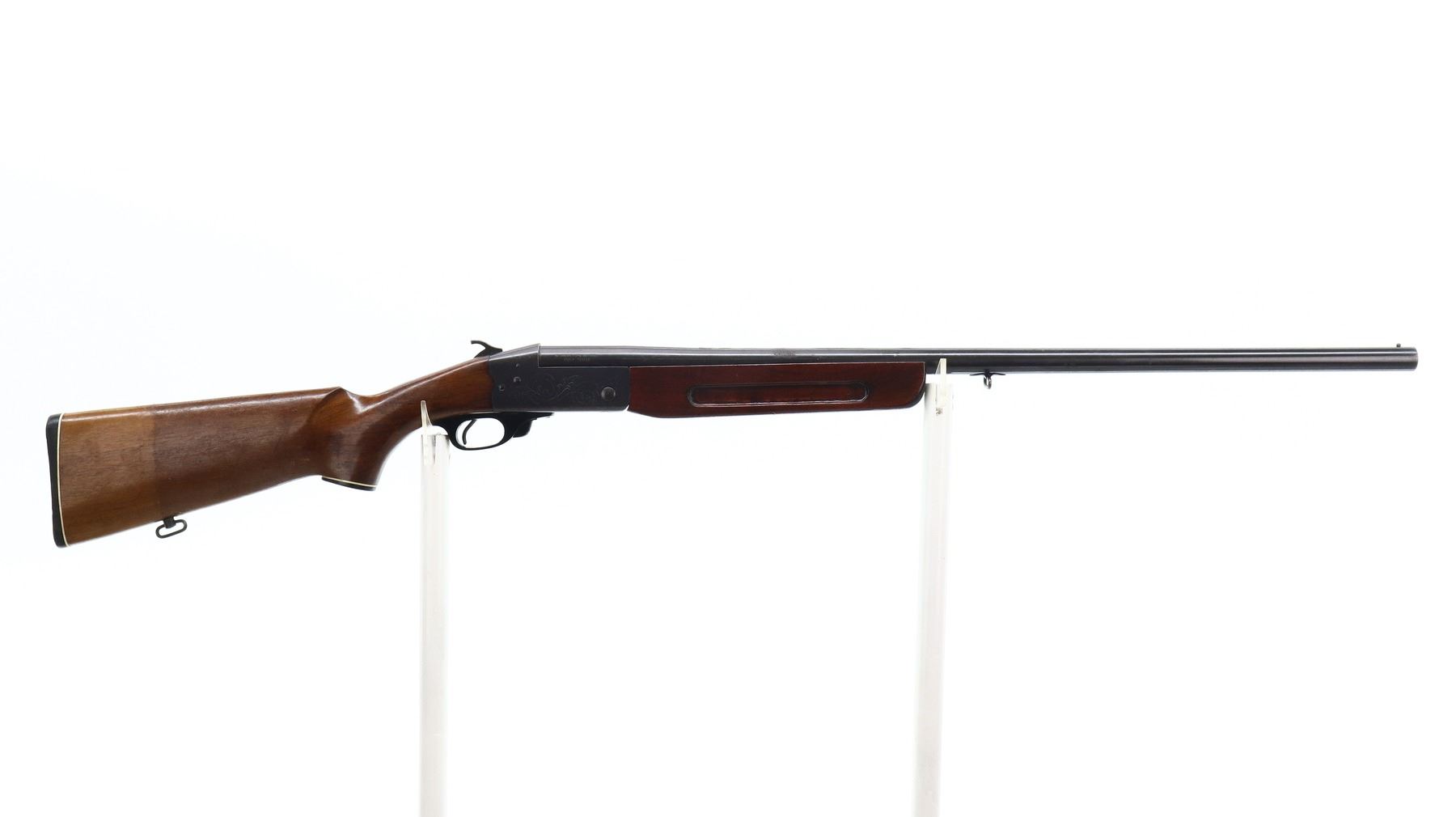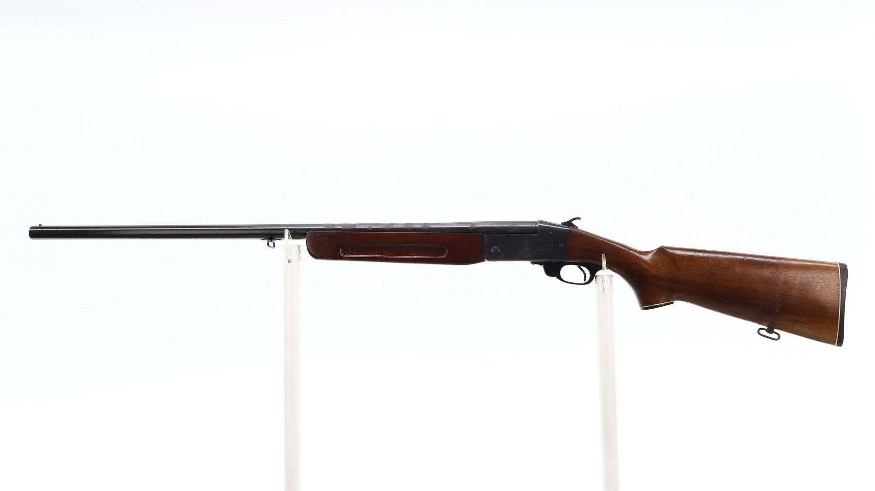 2/10, REMINGTON, MODEL: 812, CALIBER: 12 G X 2 3/4", BORE IS GOOD. FIXED FULL CHOKE. BRASS BEAD. ROUND BARREL. GROOVED SPUR HAMMER. EJECTOR. TWO PIECE SMOOTH WOOD STOCKS. REPLACED FOREND WITH FINGER GROOVE. PISTOL GRIP, CRACKED BEHIND THE RECEIVER. GROOVED BLACK POLYMER BUTT PLATE. GRIP CAP. SLING SWIVELS. METAL FINISH SHOWS RUST. SCRATCHES, HANDLING MARKS AND WEAR. STOCKS SHOW MARKS, SCRATCHES AND WEAR. ACTION: HINGE SINGLE SHOT SHOTGUN , BARREL LENGTH: 30", SERIAL # C54767, CONDITION: 2/10, CLASS: CANADIAN NON RESTRICTED