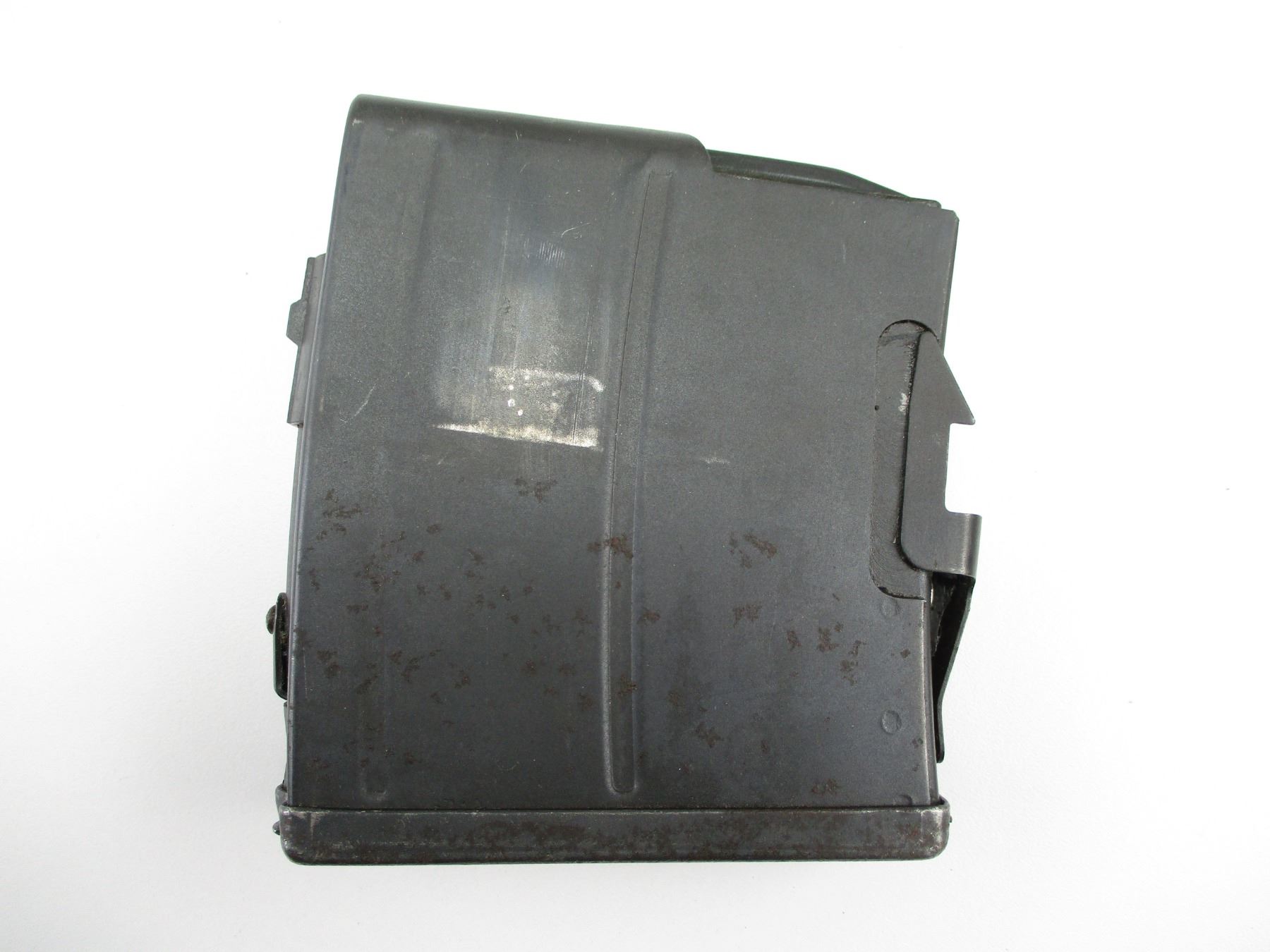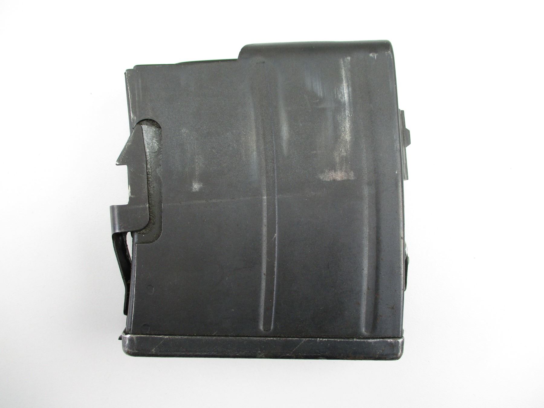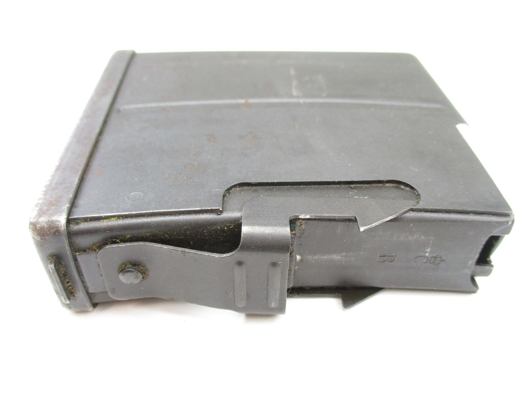 6.5X 55, 5/10 ROUND PINNED MAG, BLUED STEEL, CROWN MARKED WITH "C" & "LB" ON FRONT & BOTTOM OF MAG.