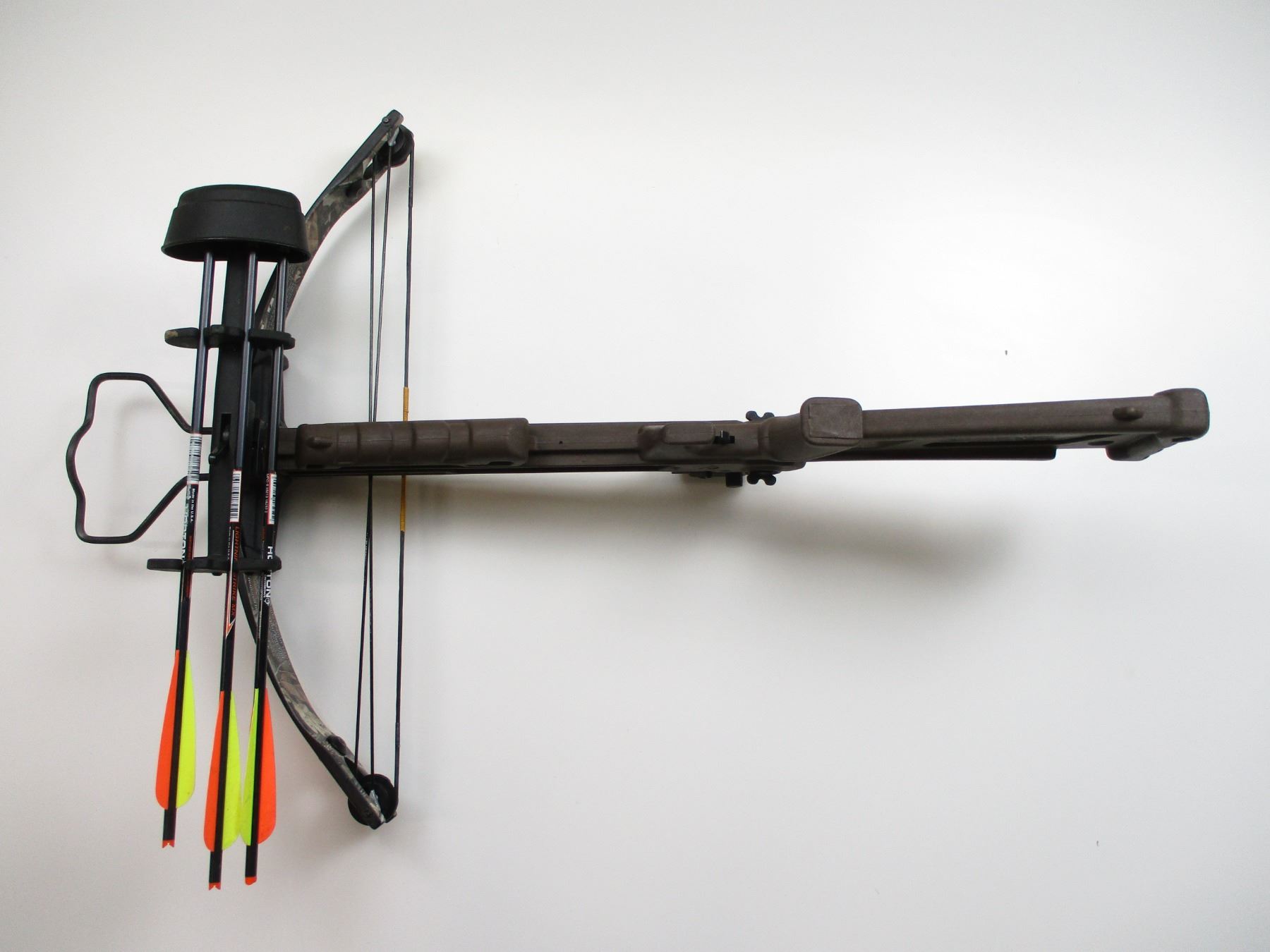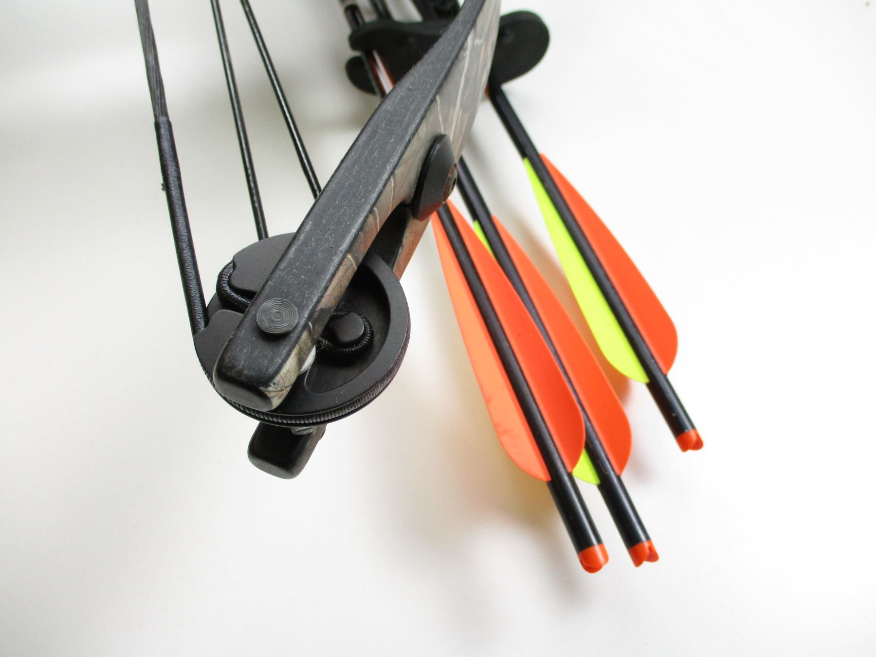 APPROX. DRAW WEIGHT OF 150LB, TAKES 20" BOLTS, INCLUDES 3 BOLTS, WITH BROAD HEADS, & QUIVER, ALSO INCLUDES RED-DOT SIGHT, NOT TESTED, NEEDS BATTERY. WITH MANUAL.