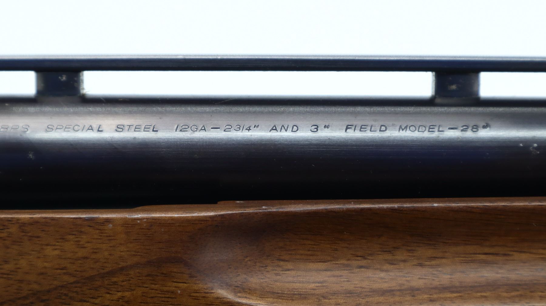 7/10, BROWNING , MODEL: BPS FIELD , CALIBER: 12 G X 3", COMES WITH SOFT CASE, BORE IS EXCELLENT. FIXED IM CHOKE. SILVER BEAD. POLISHED BLUED FINISH. VENTED RIB. TANG SAFETY. GOLD TRIGGER. MAGAZINE TUBE CUT OFF. TWO PIECE WOOD STOCKS. CHECKERED FOREARM AND PISTOL GRIP. BROWN VENTED RUBBER RECOIL PAD. METAL FINISH SHOWS SOME SCRATCHES, HANDLING MARKS AND WEAR. STOCK SHOWS SOME MARKS, SCRATCHES AND WEAR. ACTION: PUMP ACTION SHOTGUN, BARREL LENGTH: 28", CONDITION: 7/10, SERIAL# 13728PM152, CLASS: CANADIAN NON RESTRICTED