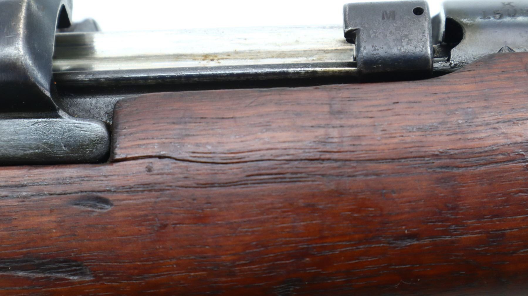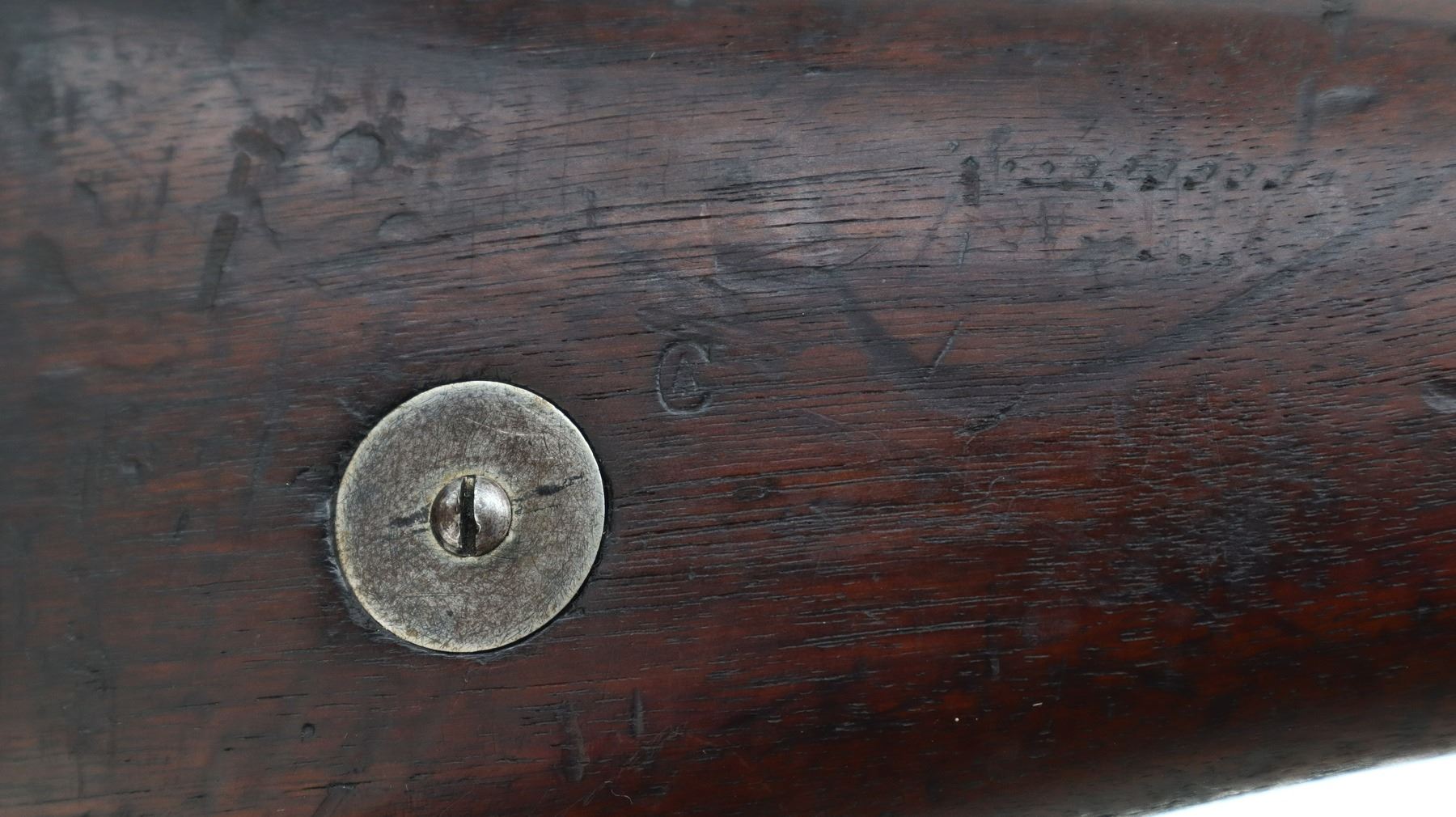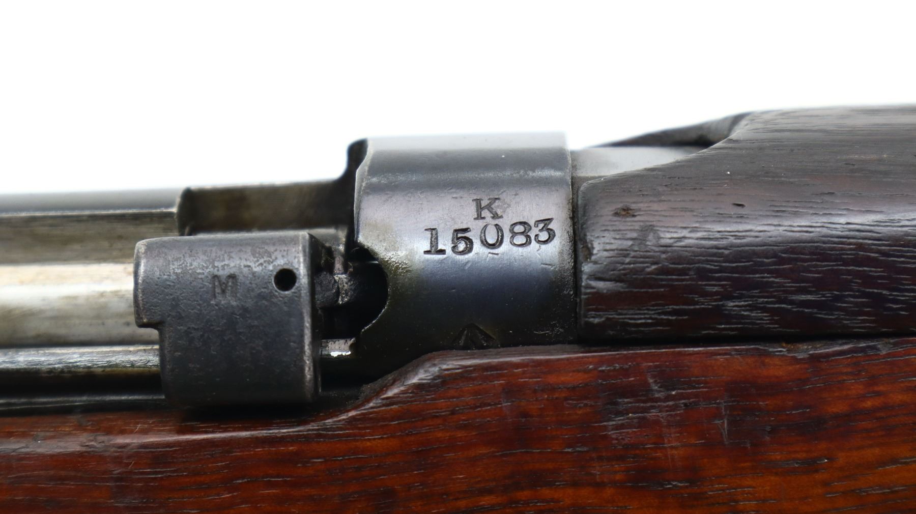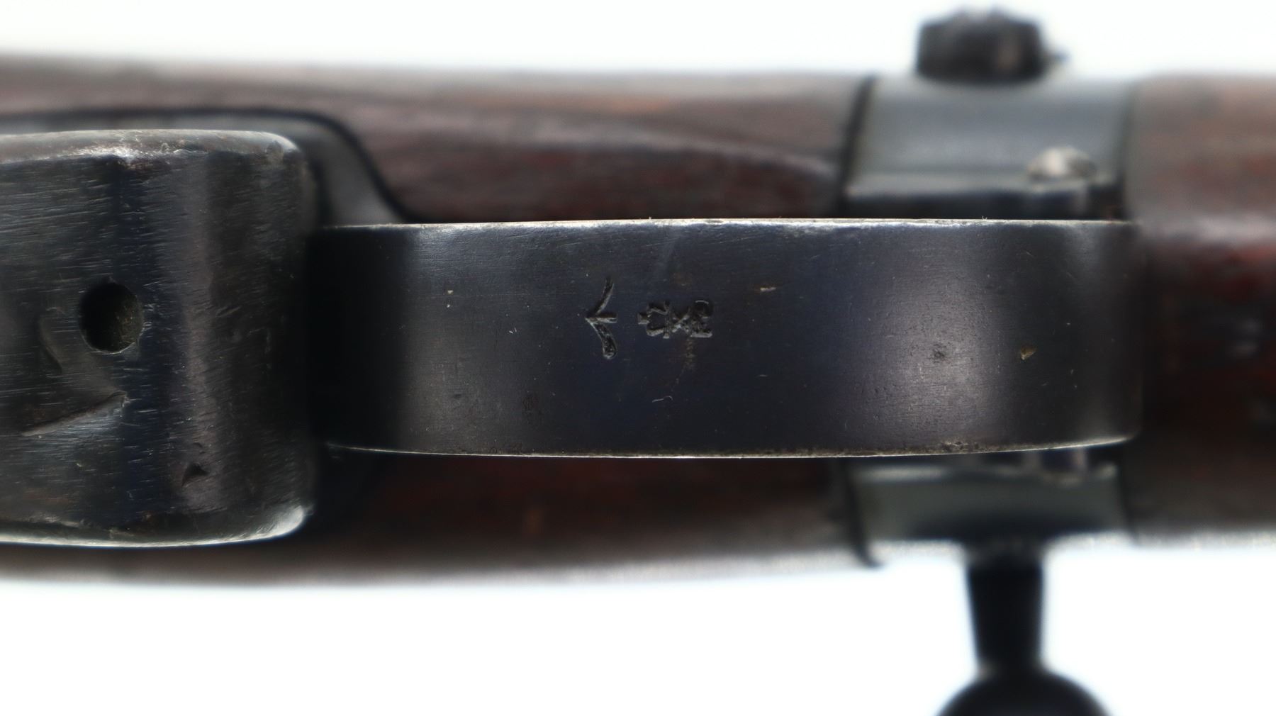 7+/10, LEE ENFIELD , MODEL: CANADIAN NO1 MKIII*, CALIBER: 303 BR , COMES WITH MAGAZINE, BORE IS VERY GOOD. MANUFACTURED BY BSA CO. 1918. ALL VISIBLE SERIAL #'S MATCH. . BLADE FRONT SIGHT WITH EARS AND RAMP. ADJUSTABLE U NOTCH REAR SIGHT WITH EARS. 4 PIECE SMOOTH FULL MILITARY WOOD STOCKS. PISTOL GRIP. SMOOTH BRASS BUTT PLATE WITH TRAP. STEEL STOCK DISK, RIGHT SIDE OF STOCK, LEFT SIDE OF RECEIVER RING ARE MARKED WITH C BRD ARROW, INDICATING CANADIAN MILITARY OWNERSHIP. SWIVELS. BAYONET LUG. STACKING SWIVEL. METAL FINISH, SHOWS SOME SCRATCHES, HANDLING MARKS AND WEAR. STOCK SHOWS SOME MARKS, SCRATCHES AND WEAR. ACTION: BOLT ACTION RIFLE , BARREL LENGTH: 25.25", SERIAL # K15083, CONDITION: 7+/10, CLASS: CANADIAN NON RESTRICTED