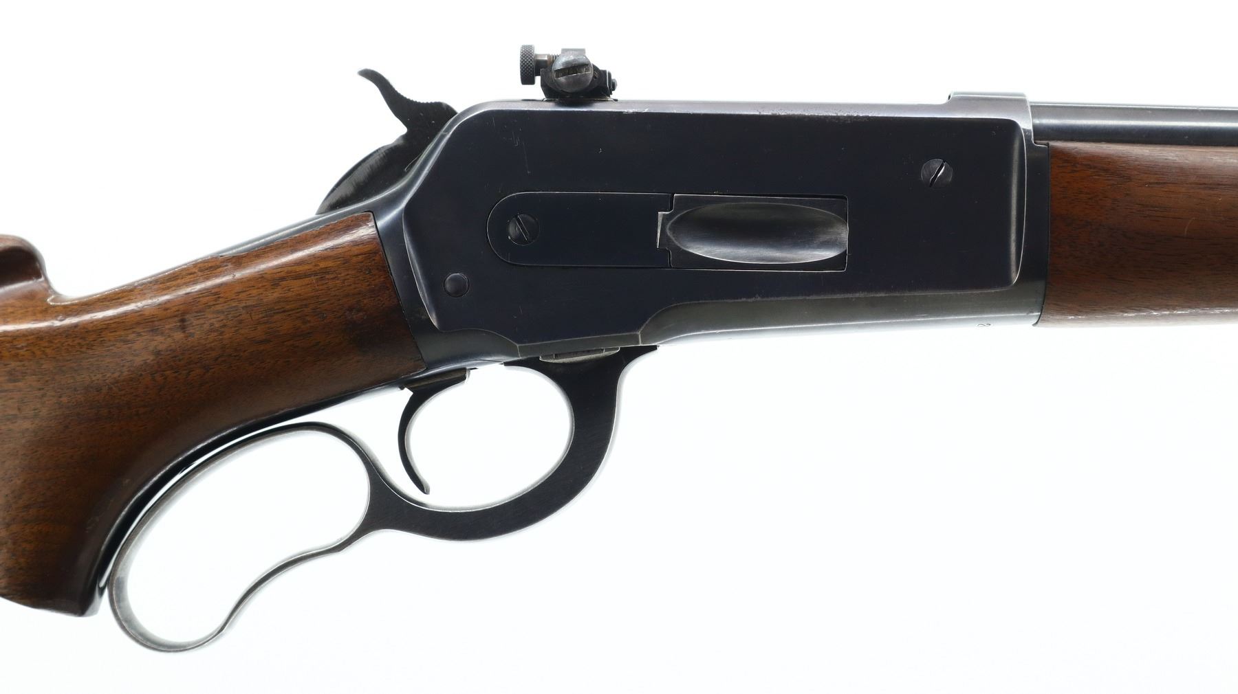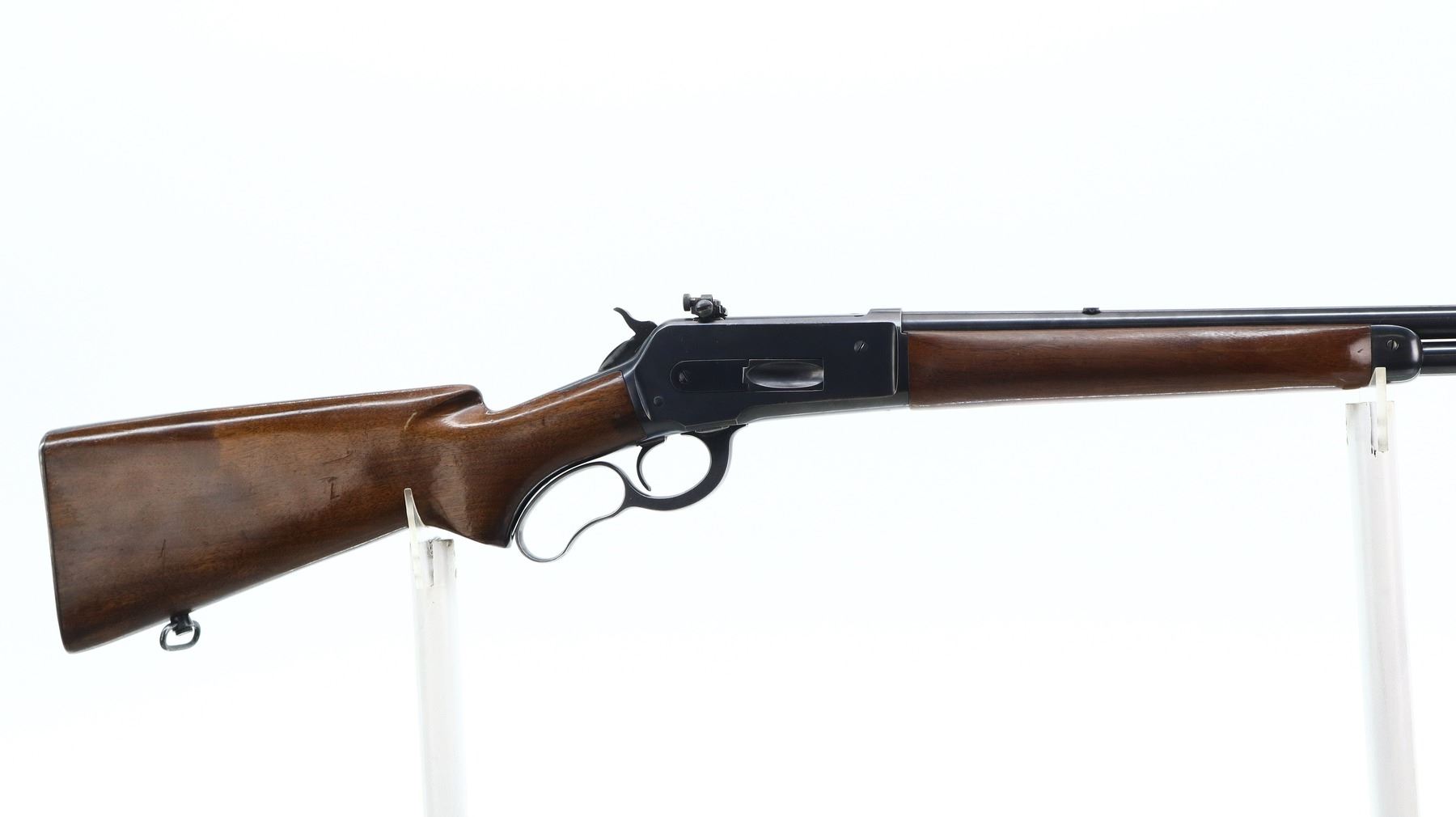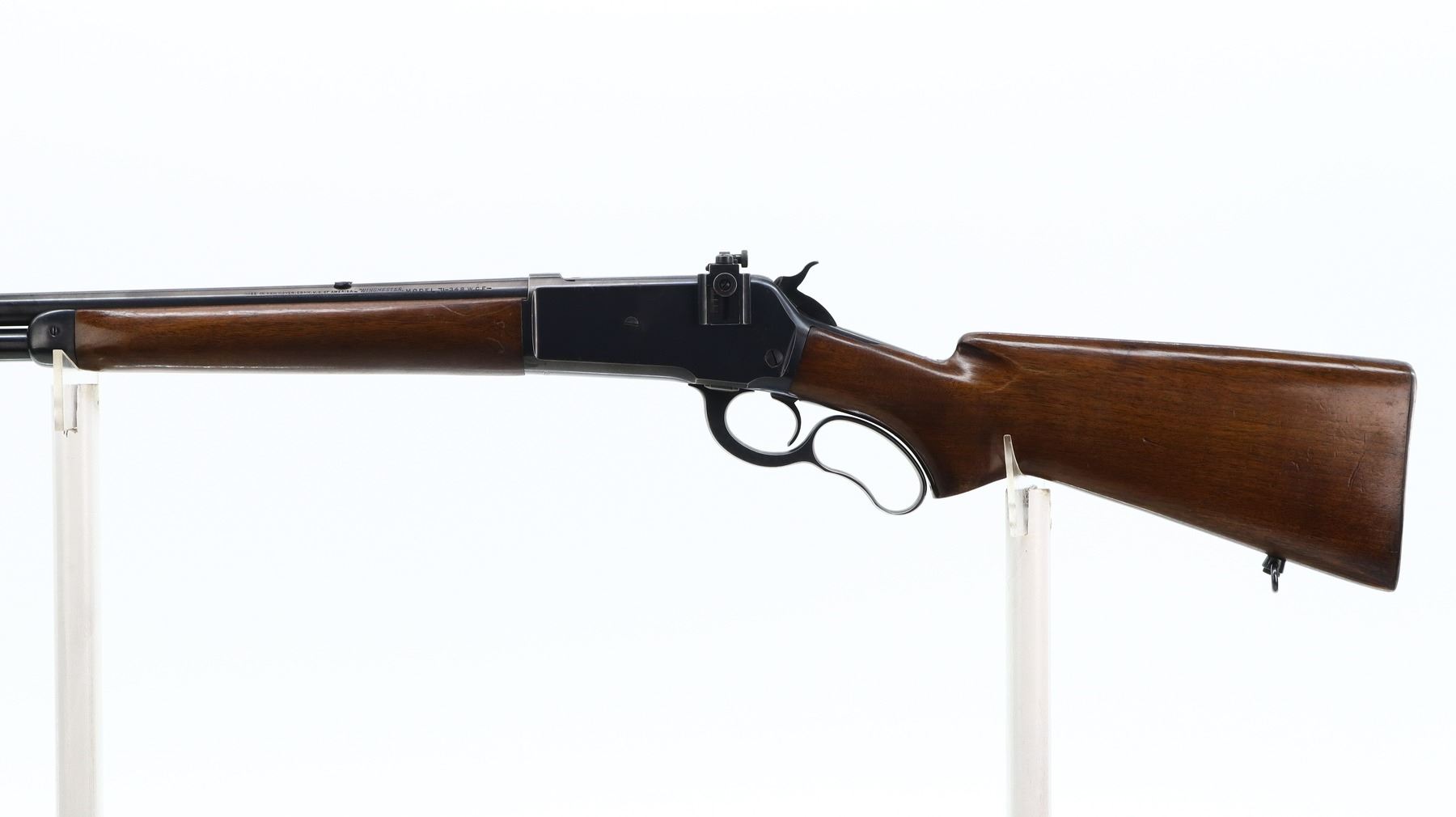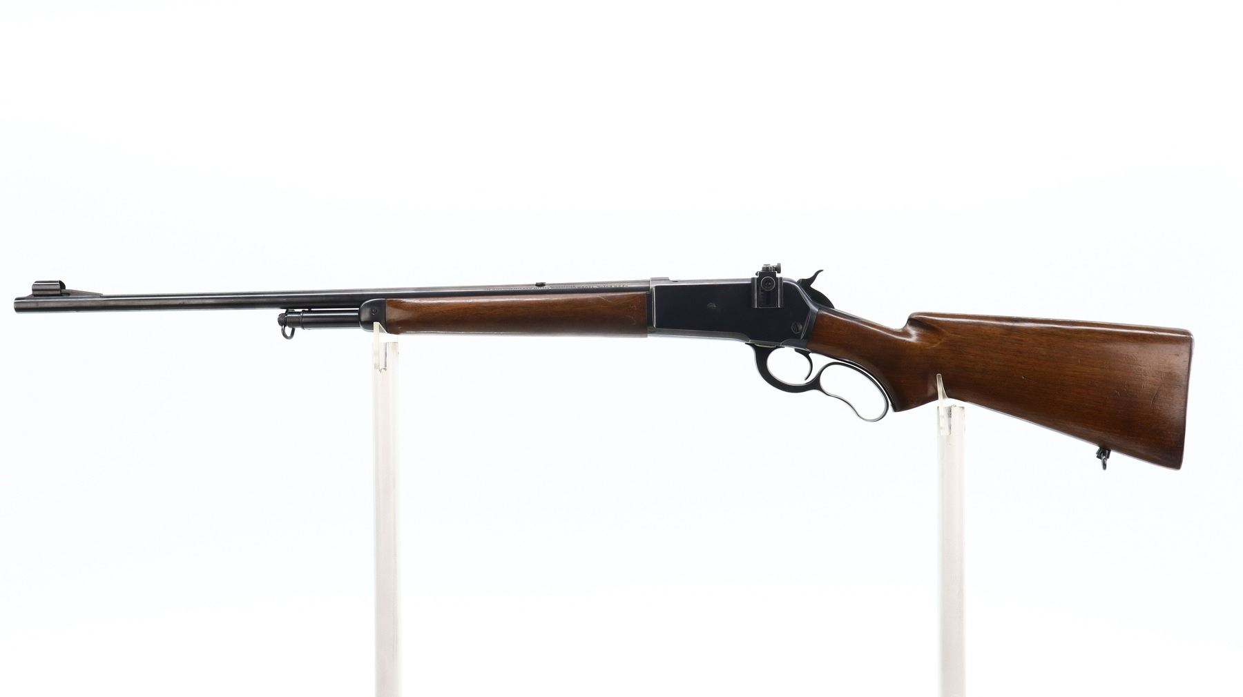7/10, WINCHESTER, MODEL: 71, CALIBER: 348 WIN, BORE IS VERY GOOD. MANUFACTURED 1949. BLADE FRONT SIGHT WITH HOOD AND RAMP. REAR SIGHT REMOVED. SLOT BLANK INSTALLED. RECEIVER DRILLED AND TAPPED WITH LYMAN 56 ADJUSTABLE PEEP SIGHT INSTALLED. BLUED FINISH. GROOVED SPUR HAMMER. TWO PIECE SMOOTH WOOD STOCKS. PISTOL GRIP. CHECKERED STEEL BUTT PLATE. SLING SWIVELS. HALF LENGTH MAGAZINE TUBE. METAL FINISH SHOWS A FEW LIGHT RUST SPECKLES, SCRATCHES, HANDLING MARKS AND WEAR. STOCKS SHOW MARKS, SCRATCHES AND WEAR. ACTION: LEVER ACTION RIFLE , BARREL LENGTH: 24", SERIAL # 28807, CONDITION: 7/10, CLASS: CANADIAN NON RESTRICTED
