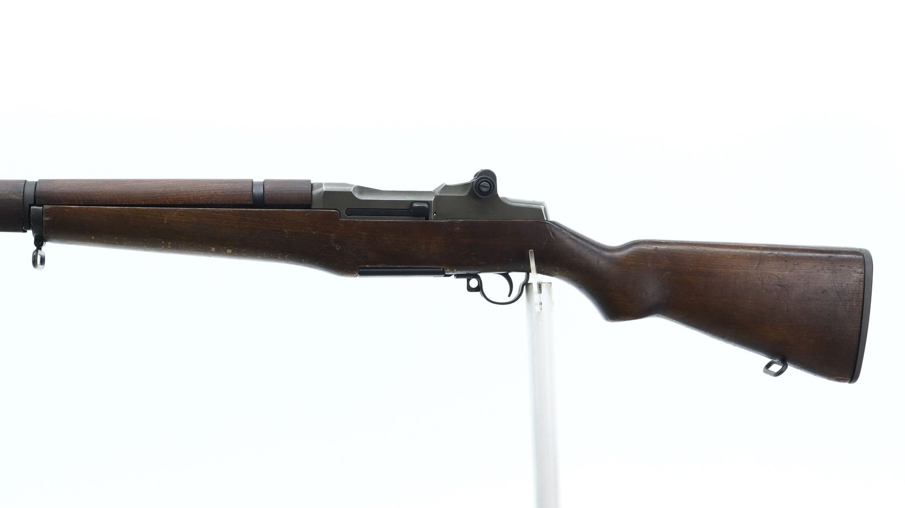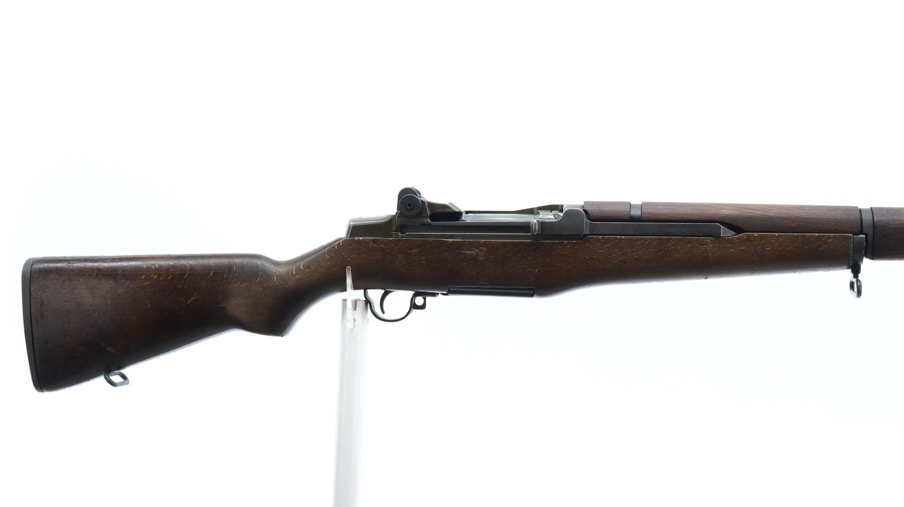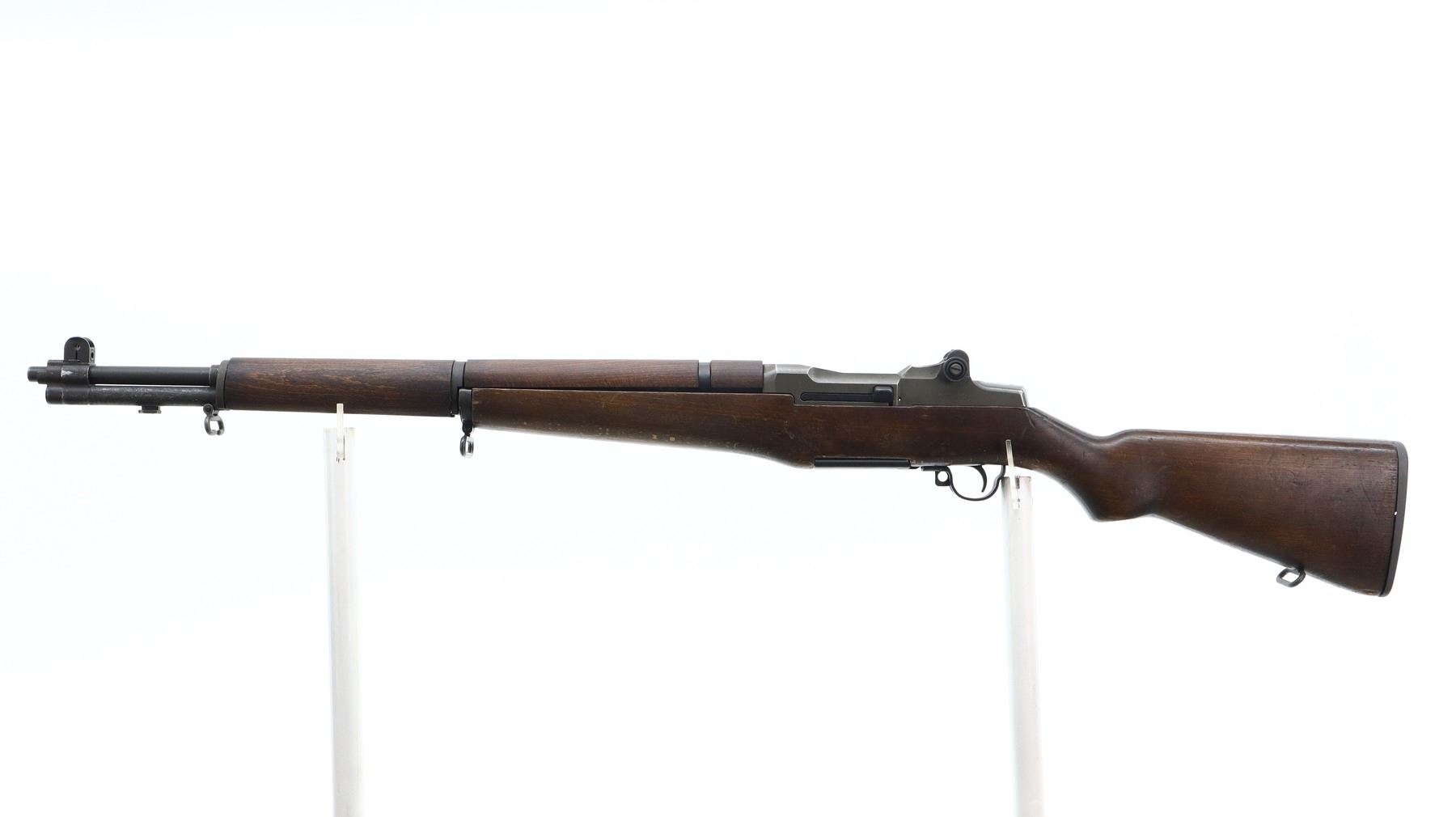 7+/10, ITALIAN , MODEL: M1 GARAND , CALIBER:30-06 SPRG , BORE IS FAIR, WORN LIGHT PITTING. MANUFACTURED BY BERETTA, BARREL MARKED RSC 1955. BLADE FRONT SIGHT WITH EARS AND RAMP. ADJUSTABLE REAR PEEP SIGHT. PARKERIZED METAL FINISH. 3 PIECE SMOOTH FULL MILITARY WOOD STOCKS. PISTOL GRIP. CHECKERED STEEL BUTT PLATE WITH TRAP. SLING SWIVELS. BAYONET LUG. STACKING SWIVEL. METAL FINISH SHOWS SOME SCRATCHES, HANDLING MARKS AND WEAR. STOCK SHOWS SOME MARKS, SCRATCHES AND WEAR. , ACTION: SEMI AUTOMATIC RIFLE , BARREL LENGTH: 24", SERIAL# PB5515, CONDITION: 7+/10, CLASS: CANADIAN NON RESTRICTED