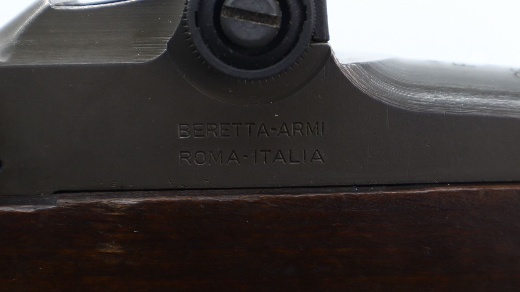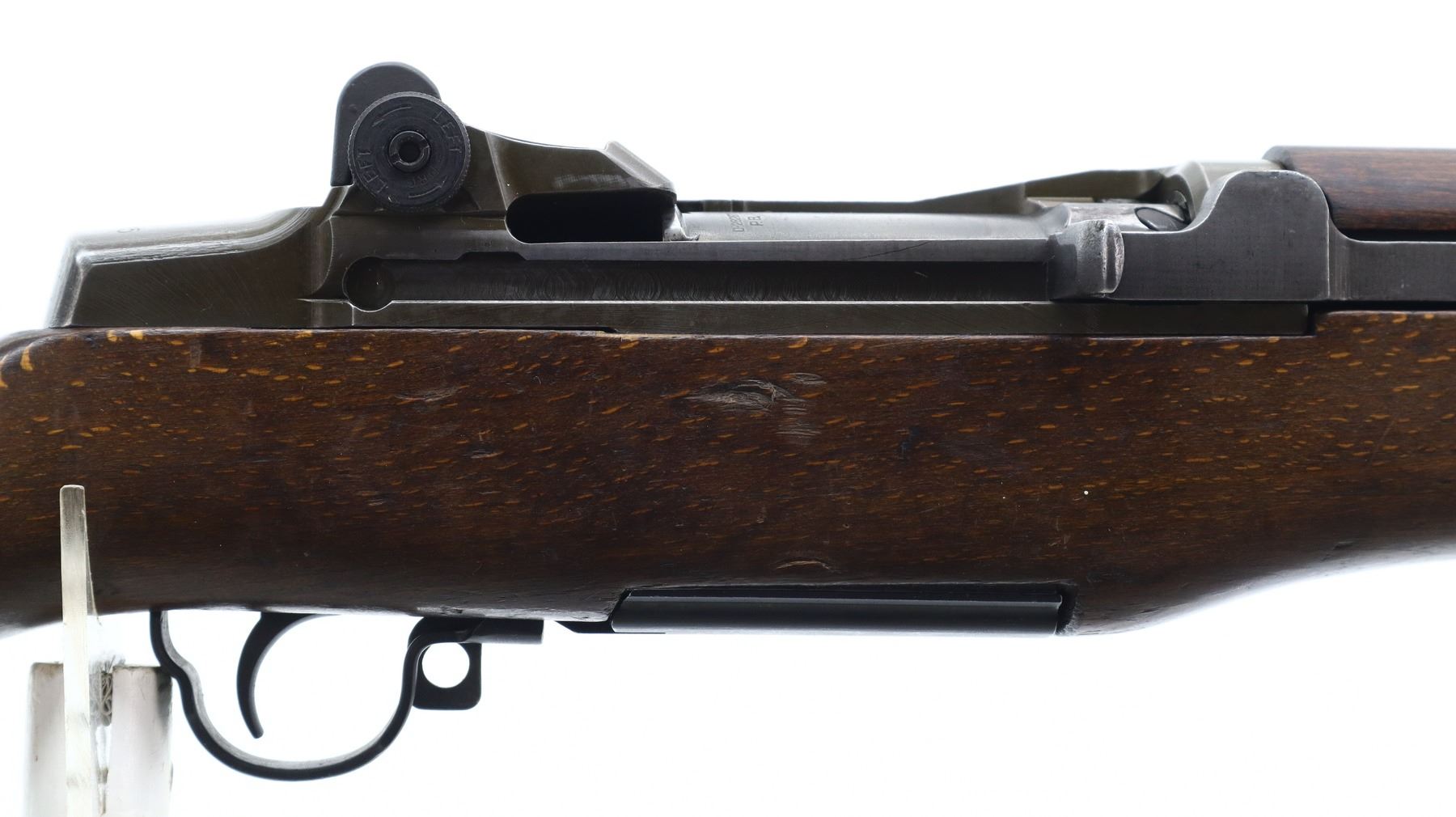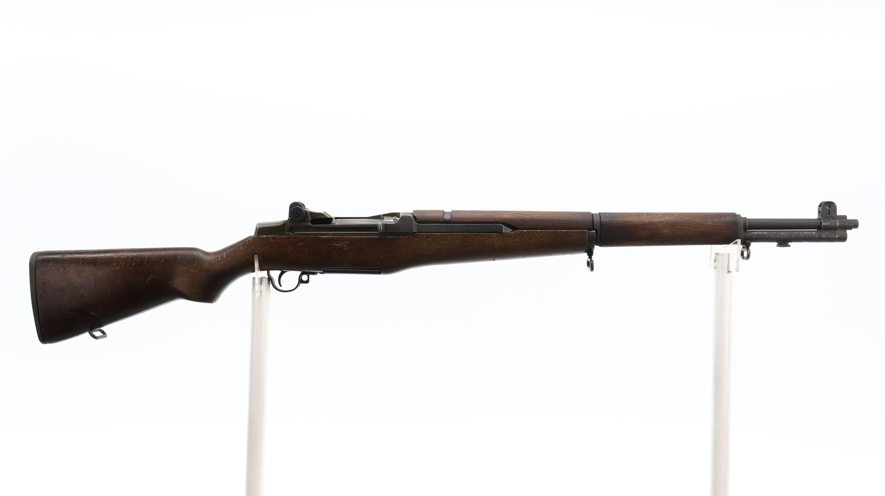 7+/10, ITALIAN , MODEL: M1 GARAND , CALIBER:30-06 SPRG , BORE IS FAIR, WORN LIGHT PITTING. MANUFACTURED BY BERETTA, BARREL MARKED RSC 1955. BLADE FRONT SIGHT WITH EARS AND RAMP. ADJUSTABLE REAR PEEP SIGHT. PARKERIZED METAL FINISH. 3 PIECE SMOOTH FULL MILITARY WOOD STOCKS. PISTOL GRIP. CHECKERED STEEL BUTT PLATE WITH TRAP. SLING SWIVELS. BAYONET LUG. STACKING SWIVEL. METAL FINISH SHOWS SOME SCRATCHES, HANDLING MARKS AND WEAR. STOCK SHOWS SOME MARKS, SCRATCHES AND WEAR. , ACTION: SEMI AUTOMATIC RIFLE , BARREL LENGTH: 24", SERIAL# PB5515, CONDITION: 7+/10, CLASS: CANADIAN NON RESTRICTED