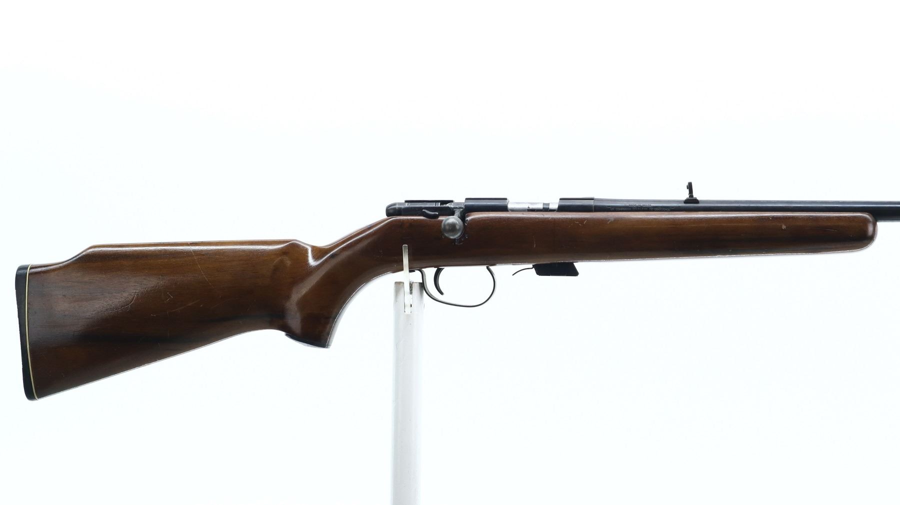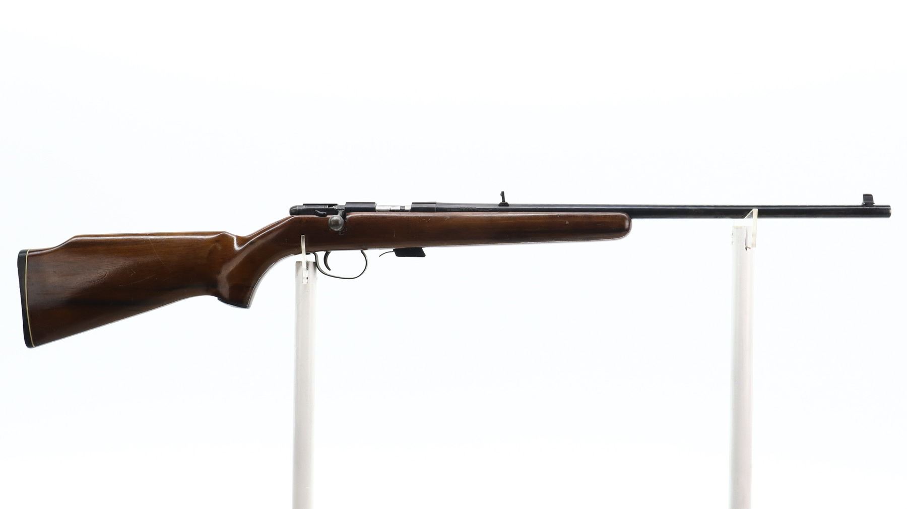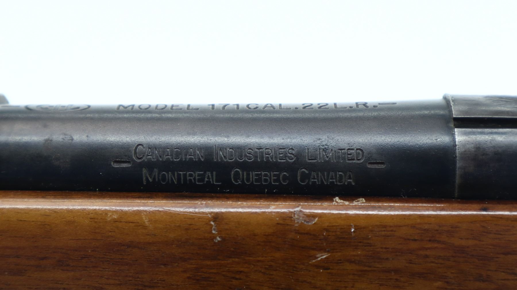 5/10, CIL, MODEL: 171, CALIBER:22 LR , COMES WITH MAGAZINE, BORE IS VERY GOOD. BLADE FRONT SIGHT. ADJUSTABLE FOLDING U NOTCH REAR SIGHT. BLUED FINISH. RECEIVER GROOVED FOR SCOPE MOUNT. BOLT HANDLE REPAIRED. ONE PIECE SMOOTH WOOD STOCK. PISTOL GRIP. GROOVED BLACK POLYMER BUTT PLATE. GRIP CAP. METAL FINISH SHOWS SCRATCHES, HANDLING MARKS AND WEAR. STOCK SHOWS MARKS, SCRATCHES AND WEAR. , ACTION: BOLT ACTION RIFLE , BARREL LENGTH: 21", SERIAL# NA, CONDITION: 5/10, CLASS: CANADIAN NON RESTRICTED