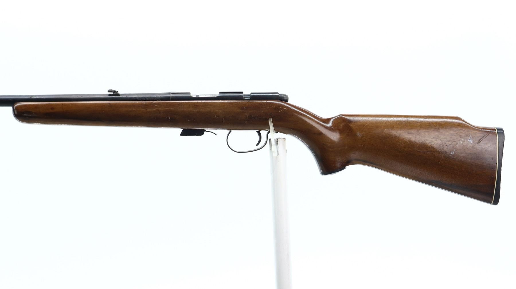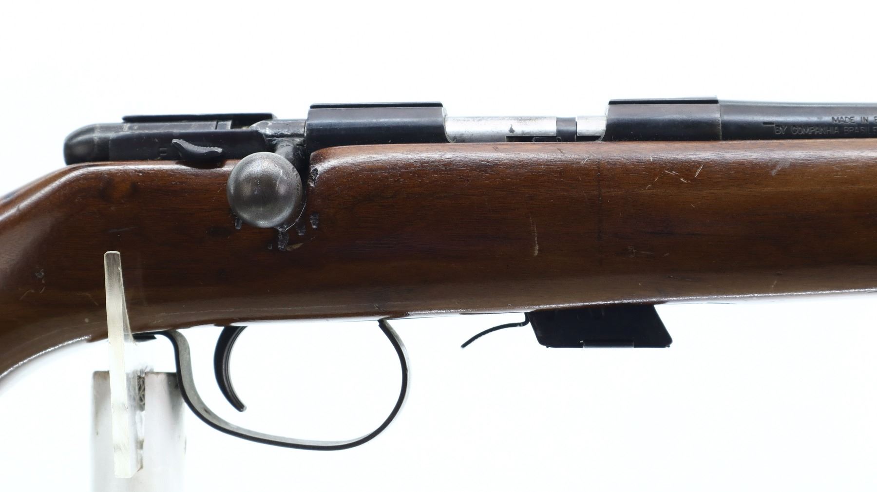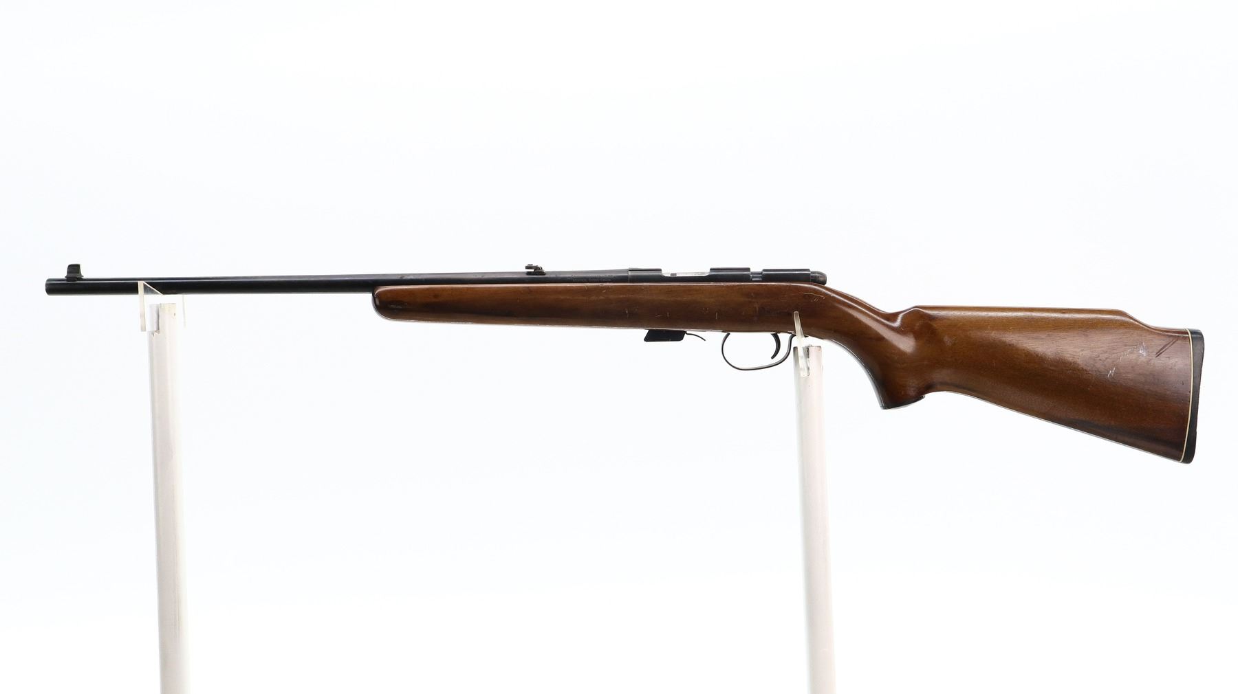 5/10, CIL, MODEL: 171, CALIBER:22 LR , COMES WITH MAGAZINE, BORE IS VERY GOOD. BLADE FRONT SIGHT. ADJUSTABLE FOLDING U NOTCH REAR SIGHT. BLUED FINISH. RECEIVER GROOVED FOR SCOPE MOUNT. BOLT HANDLE REPAIRED. ONE PIECE SMOOTH WOOD STOCK. PISTOL GRIP. GROOVED BLACK POLYMER BUTT PLATE. GRIP CAP. METAL FINISH SHOWS SCRATCHES, HANDLING MARKS AND WEAR. STOCK SHOWS MARKS, SCRATCHES AND WEAR. , ACTION: BOLT ACTION RIFLE , BARREL LENGTH: 21", SERIAL# NA, CONDITION: 5/10, CLASS: CANADIAN NON RESTRICTED