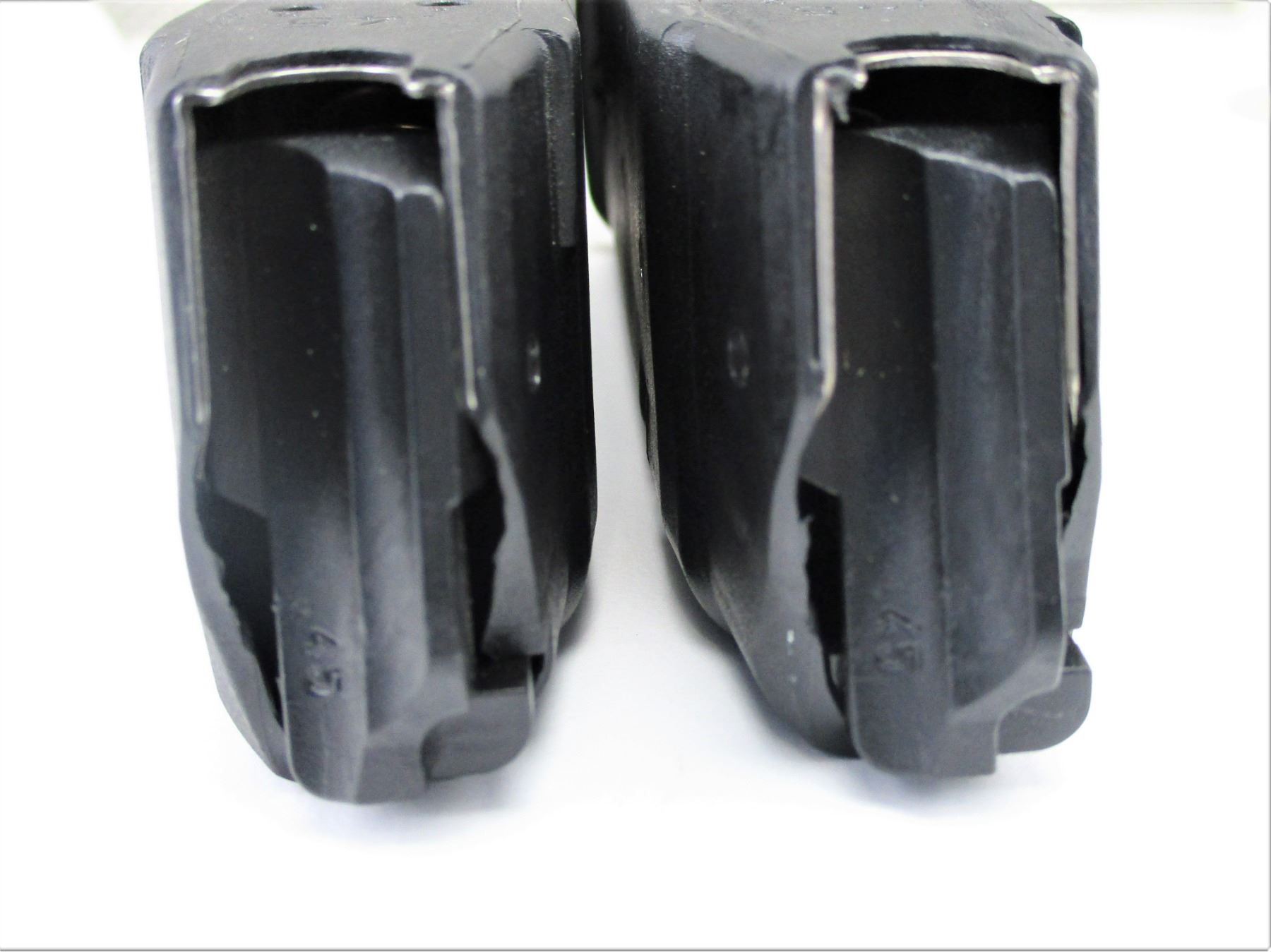 LOT OF 2. .45 ACP, 10/13 ROUND PINNED MAGS, POLYMER FOLLOWER & BODIES, 2020 AUSTRIA MARKED.