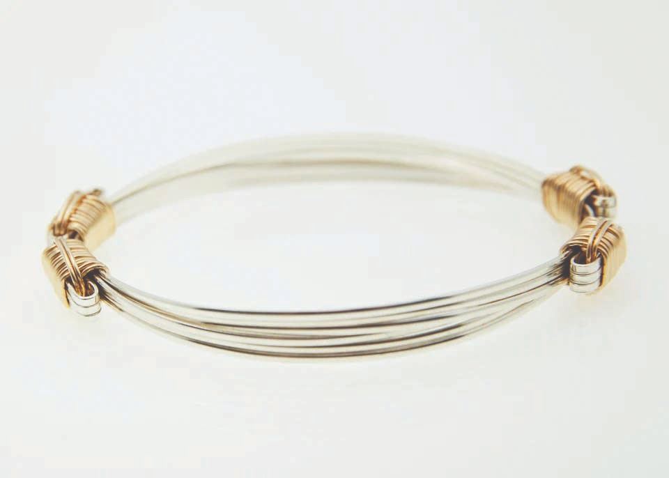 silver. The knots are hand-wrapped in contrasting 14 kt gold fill.
