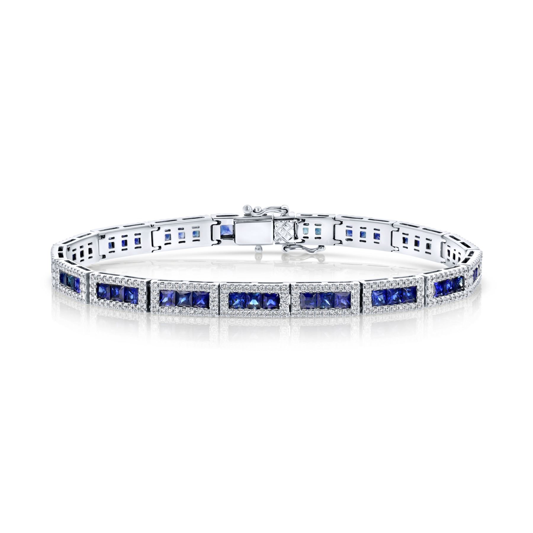 NATURAL CELYON BLUE SAPPHIRE & DIAMOND BRACELET SET IN 14K WHITE GOLD
