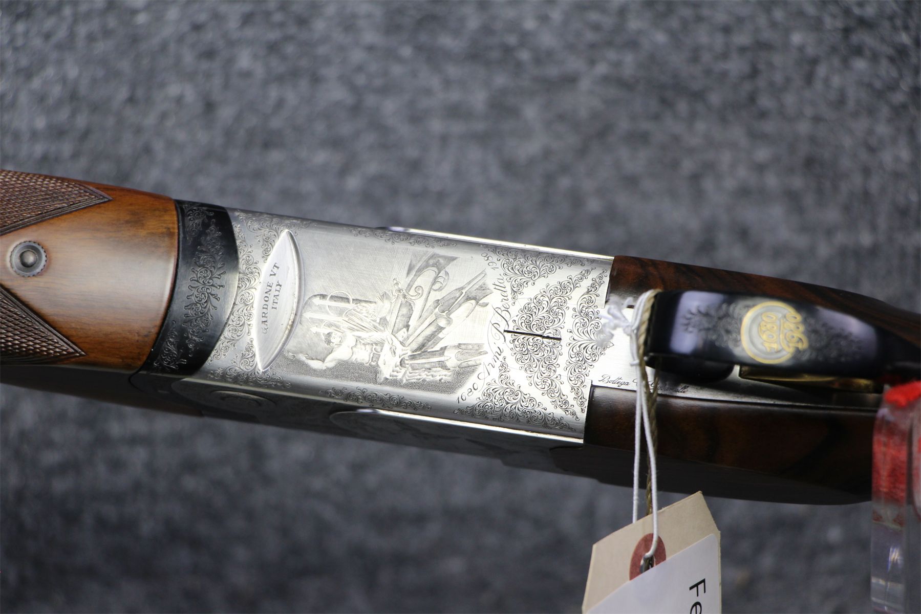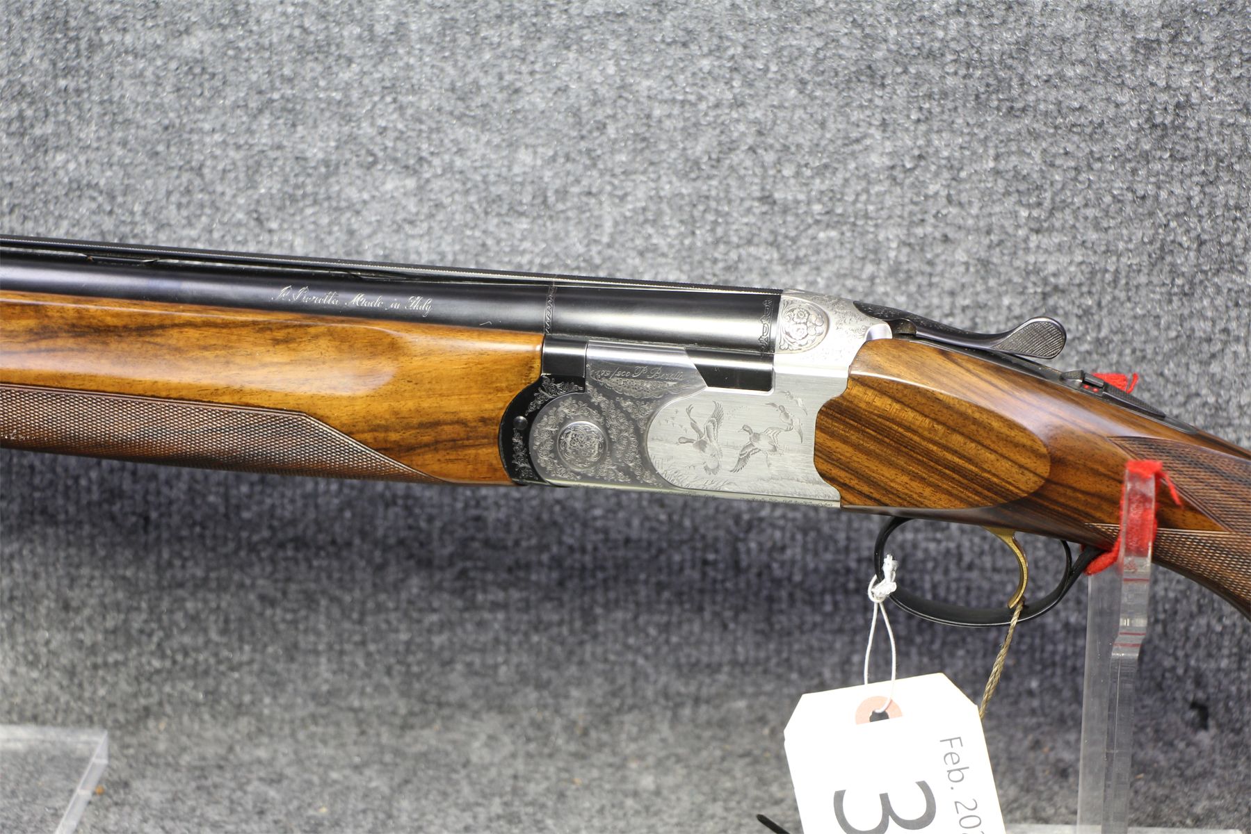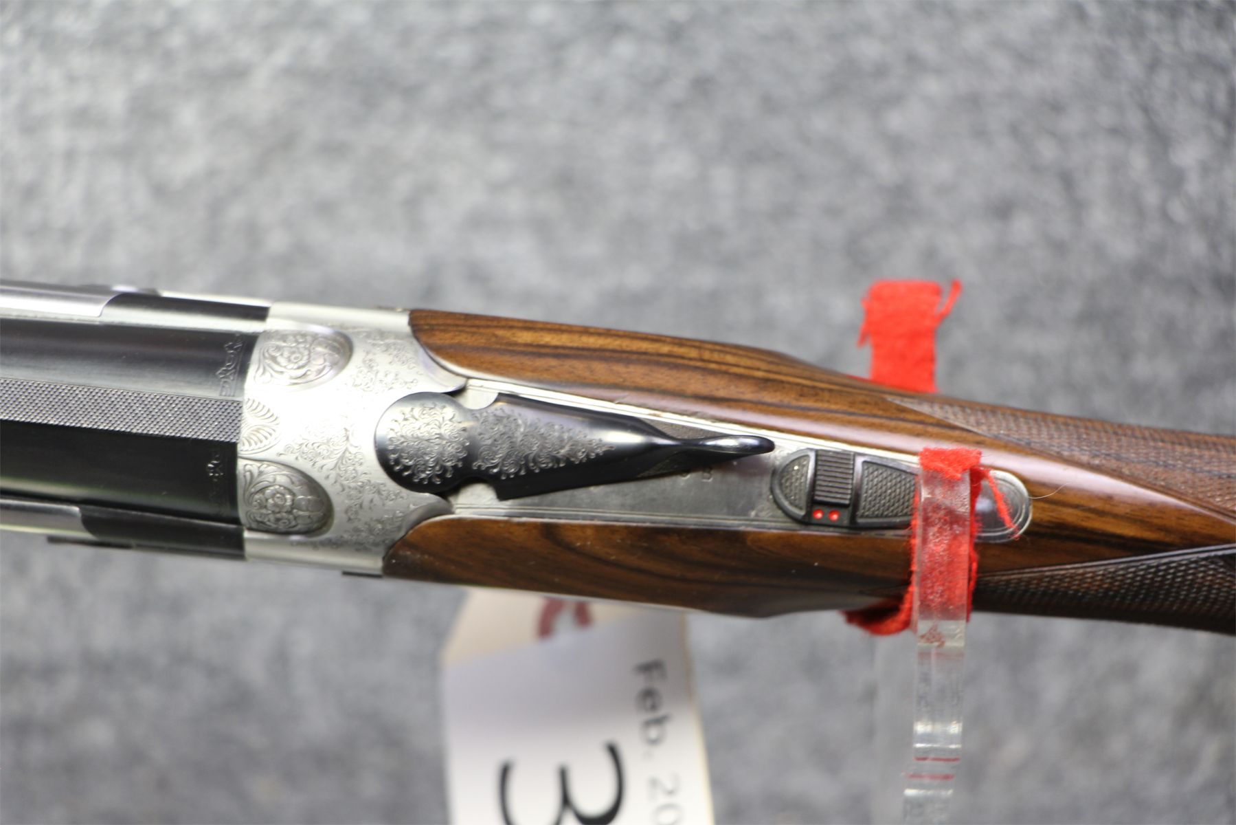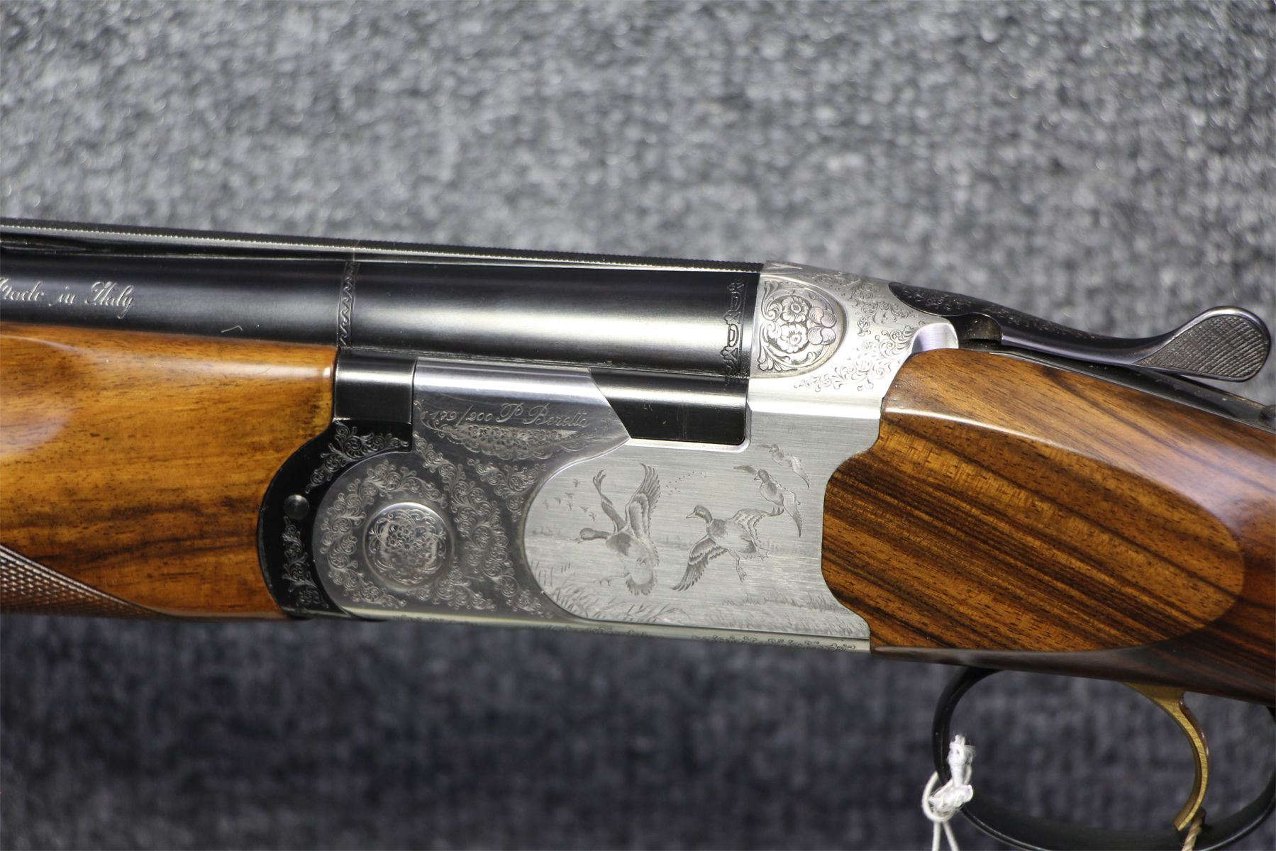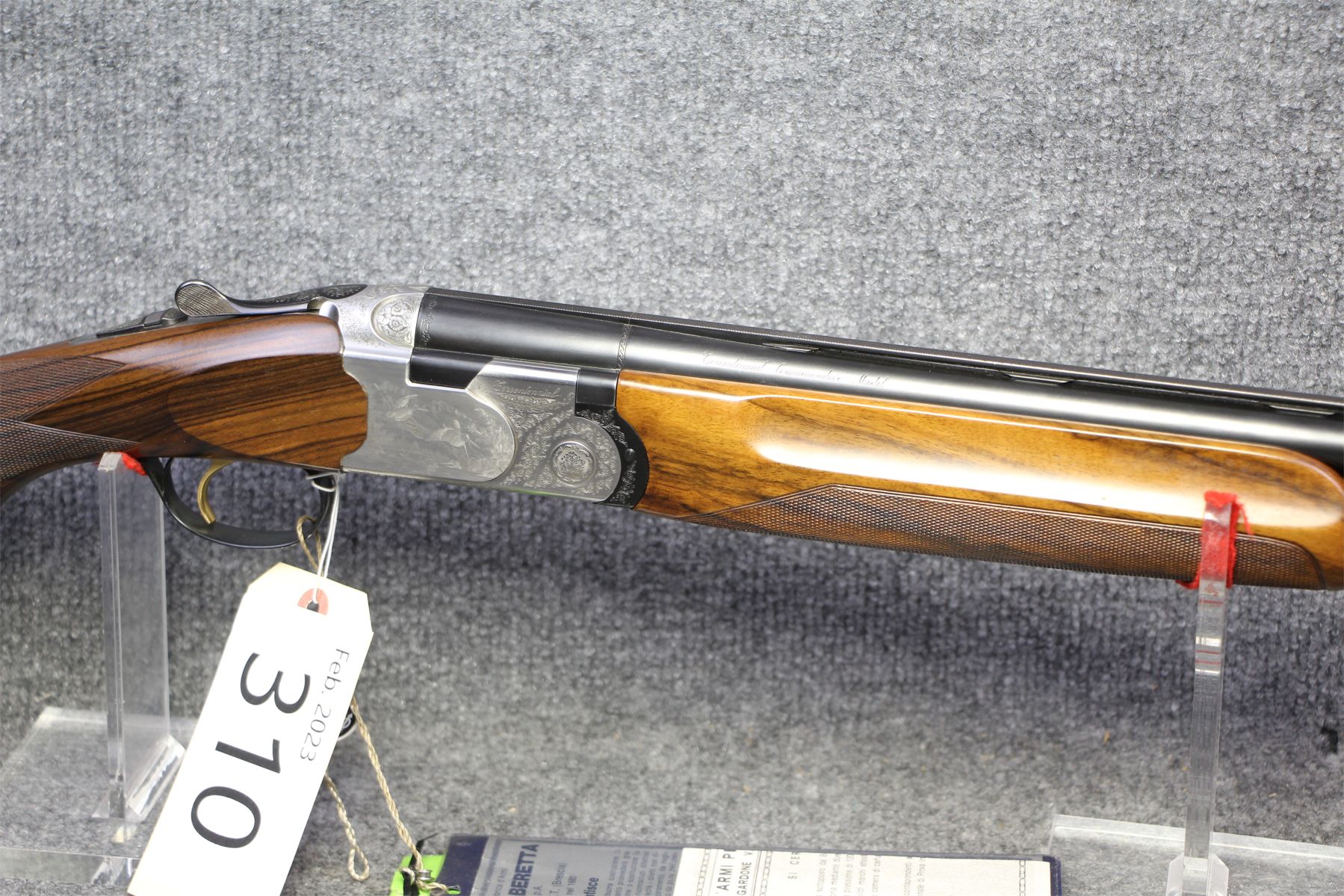 In immaculate condition. Not a mark on this gun. This celebrates the tri-centennial of Beretta's manufacturing. This is a limited edition of 200 and this is #179. Engraved by master engravers Botega Giavanello. The shading engraving must be seen to be believed. LOP 14". Drop 2 1/4".