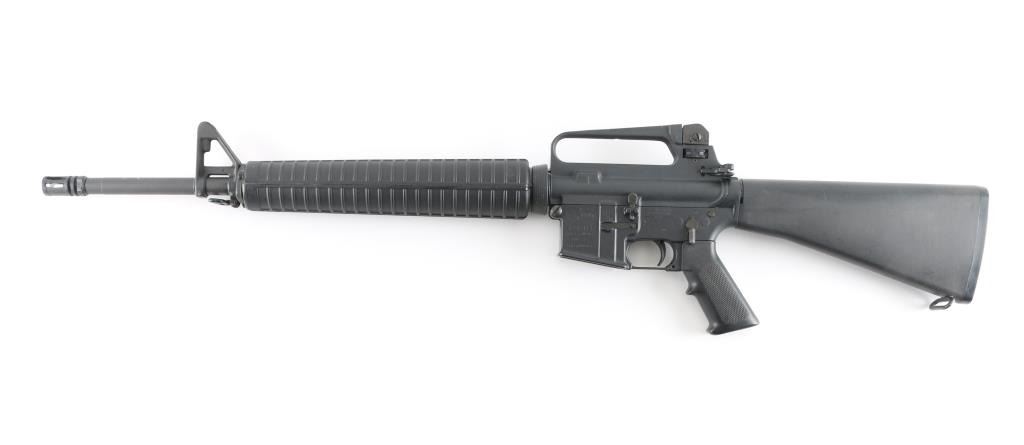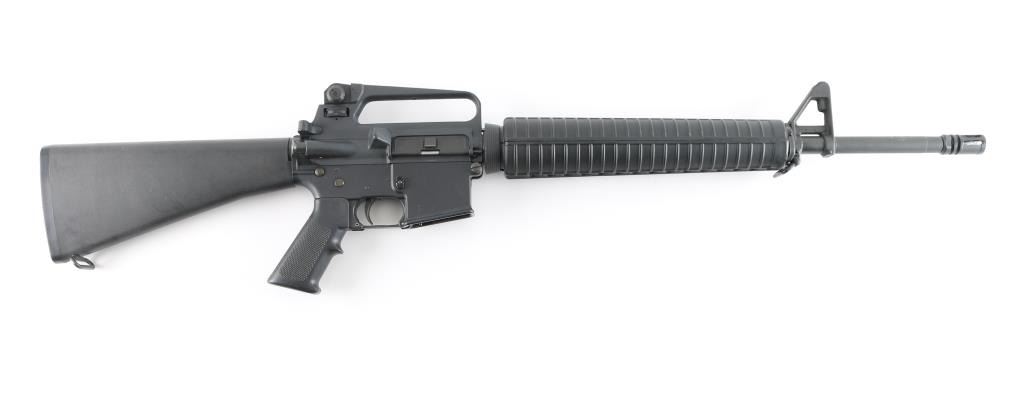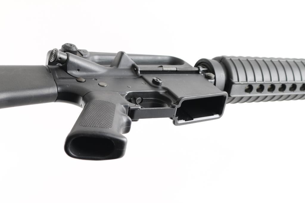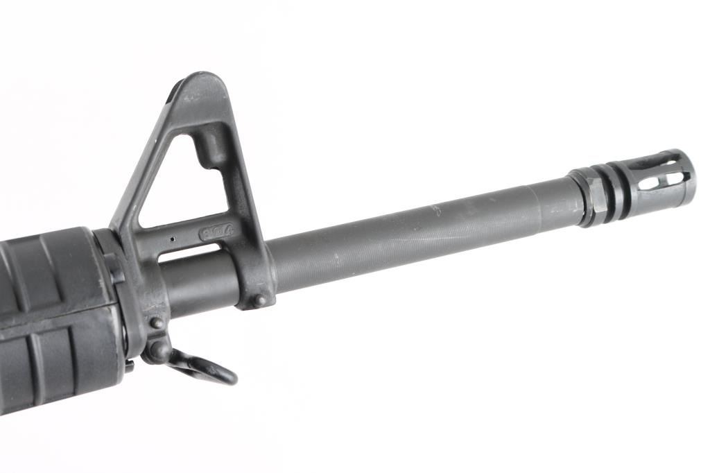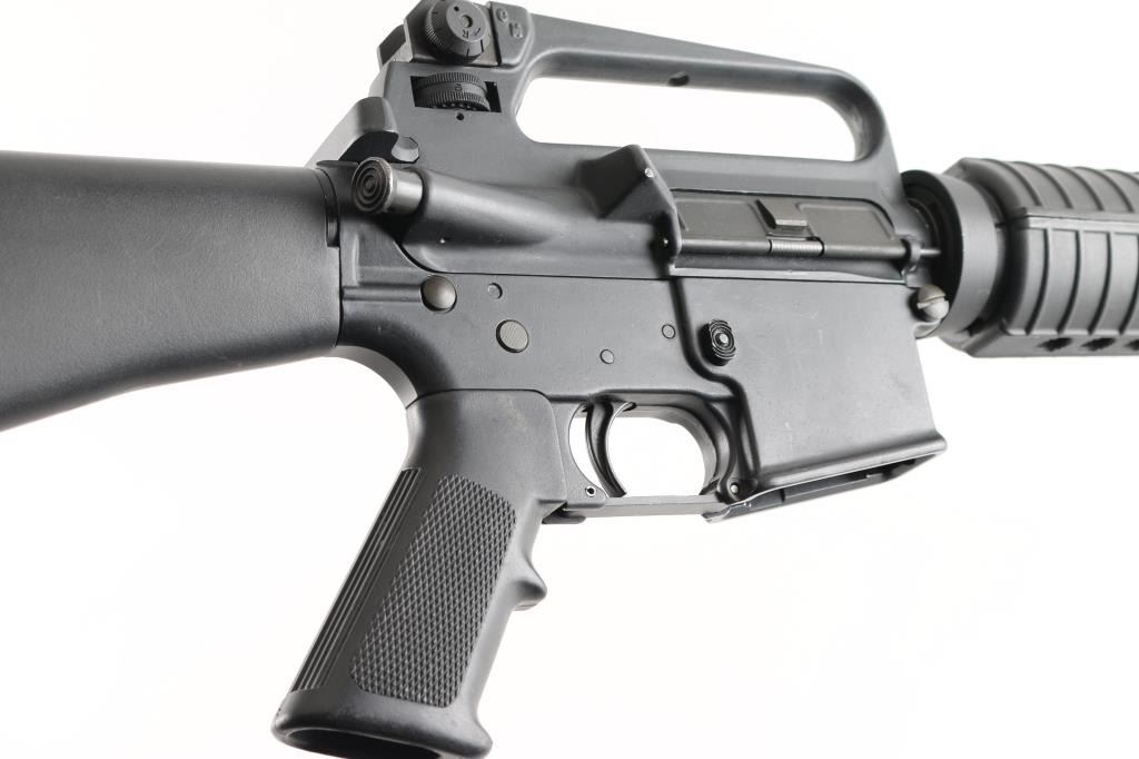 SN: ST008795 Semiautomatic rifle features matte black parkerized finish, black plastic furniture, round hand guards, A2 length butt with trap door & compartment in butt, A2 style upper receiver with brass deflector on right side, dual screw pivot pin, 20" 1:7 twist A2 profile barrel with chrome lined bore, adjustable sights with protected post front and A2 style dual aperture rear peep, A2 flash hider, round button forward assist, sling swivels, manual safety. Lower receiver does not have fence around mag release button. Half moon bolt carrier to clear pinned block in lower receiver. No bayonet lug on front sight base. Bore is excellent condition. Metal retains 98% finish, with handling marks and edge losses, scuff on forward assist button. Plastic parts are very good condition with minor scratches. No magazine. Condition is NRA Excellent *** Modern Firearm ***