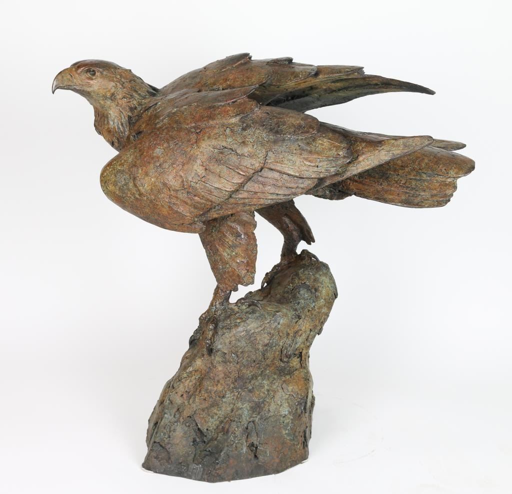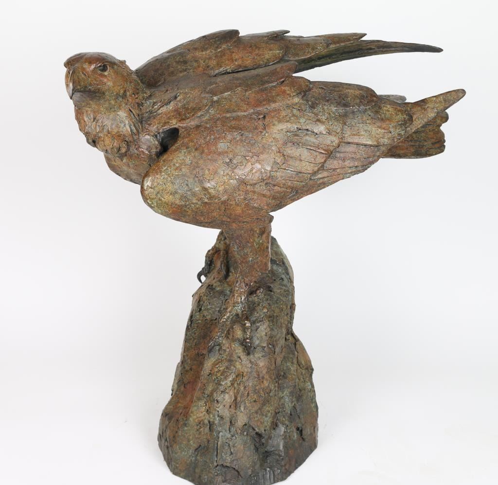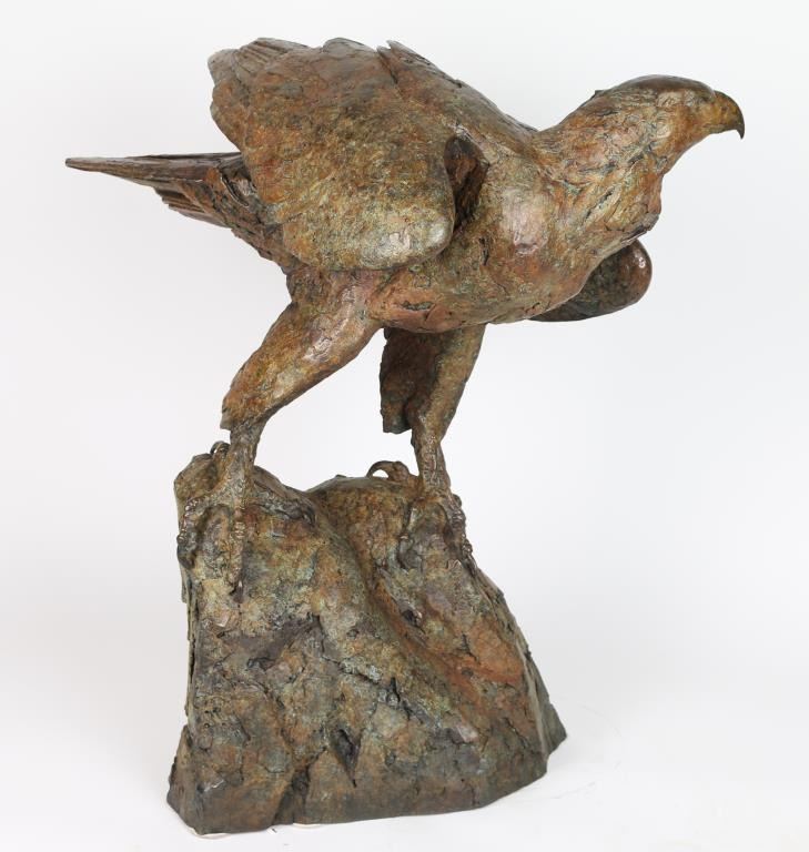 Depicting a Large multicolored bronze of a Hawk, numbered 3/20, signed "S.Matia" Measuring 27"x25"x14".