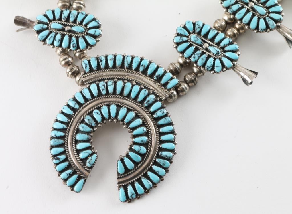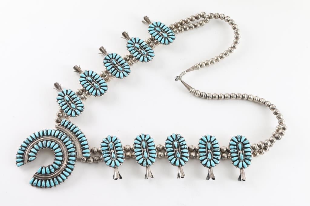 in a cluster design, TW maker marked. Beautiful light turquoise. Approx 18" long.