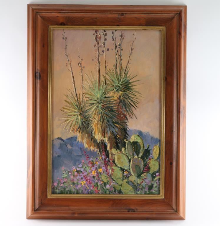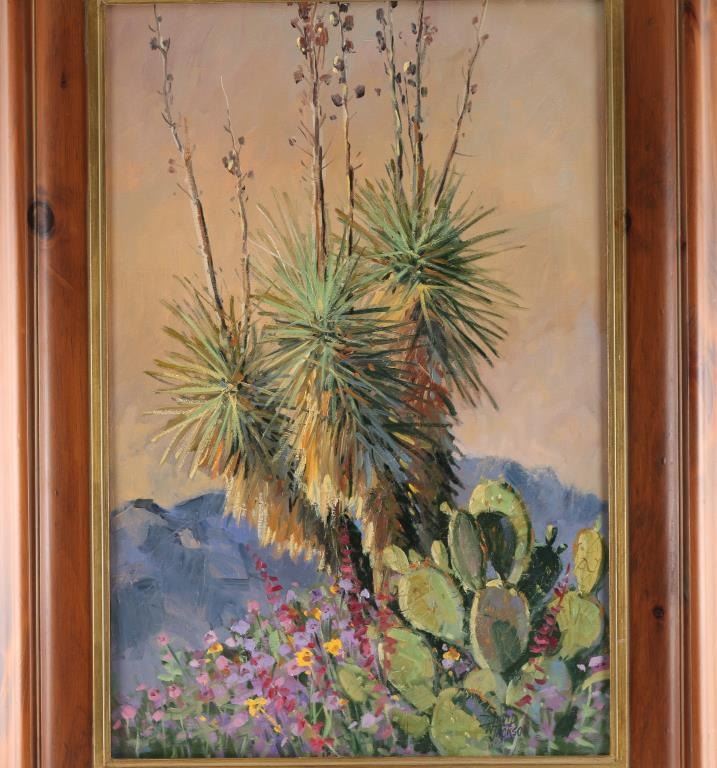 By David Jackson, signed lower right, entitled "Nancy's Yucca" Measures 30x20". In wood frame. David Jackson (20th century) was active/lived in United States. David Jackson is known for Painting.