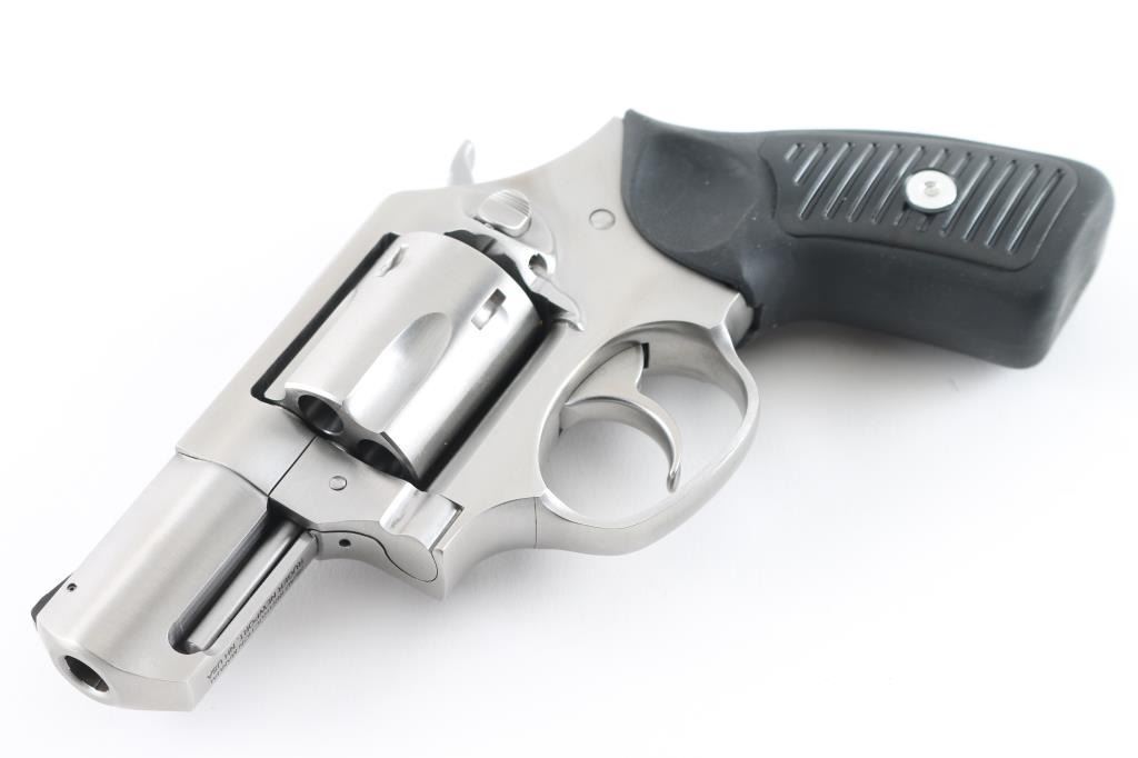 Double action revolver manufactured circa 2012. Features stainless steel construction, 2.25" barrel with fixed sights, 5 shot fluted cylinder, black rubber grip with grooved plastic side panels. Bore and chambers are excellent condition. Overall condition is like new, with few signs of handling. Includes original factory hard plastic box with fired case & manual. Condition is NRA Excellent - like new *** Modern Firearm ***