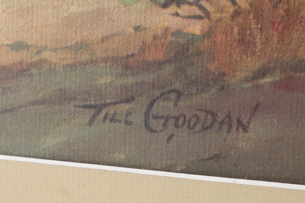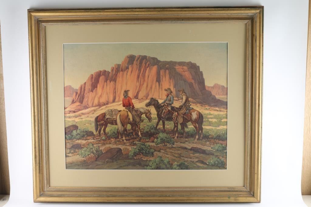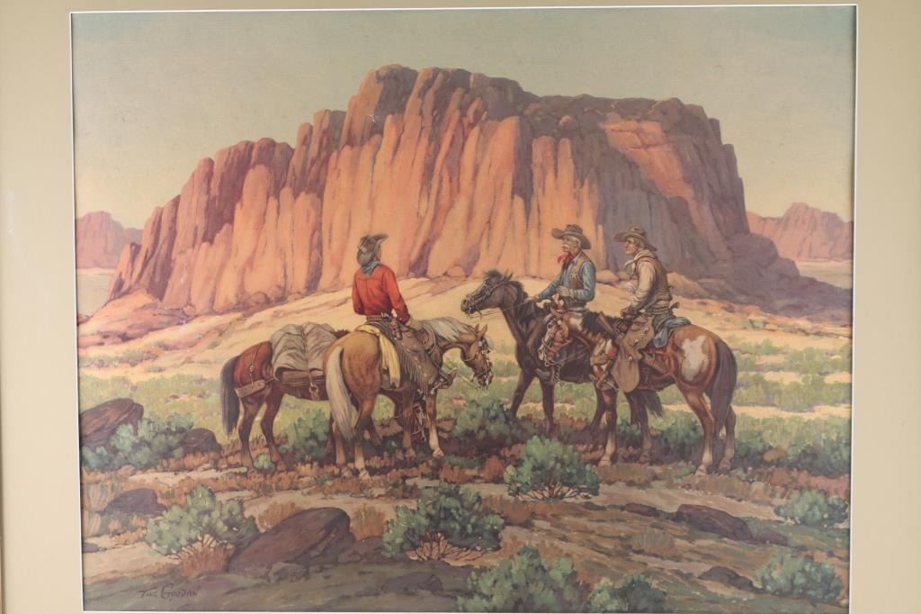 by Till Goodan, western print showing sheriff and cowboys with Arizona landscapes. 22.5"x28.5" image only.