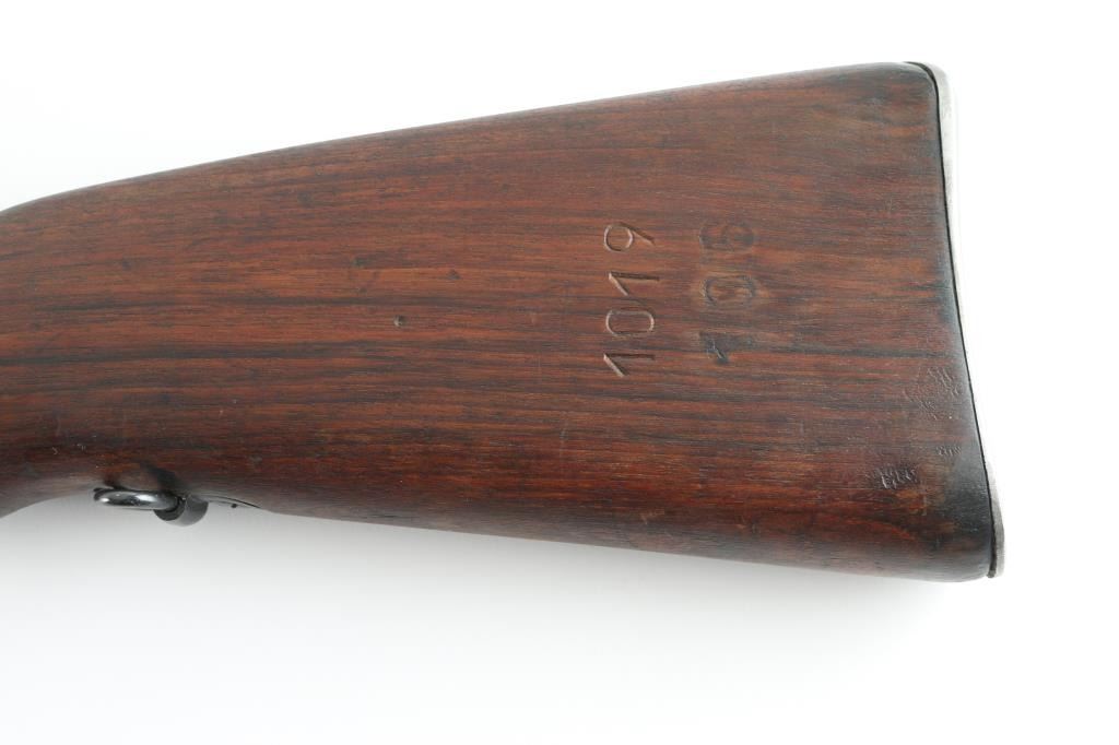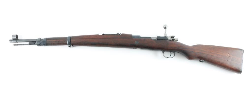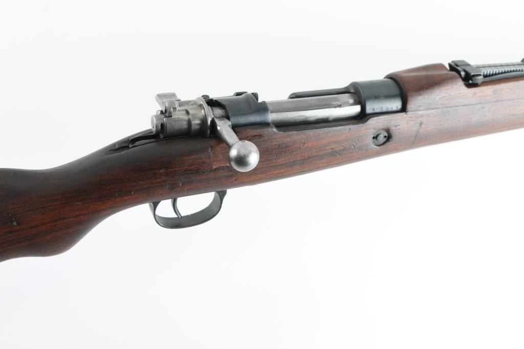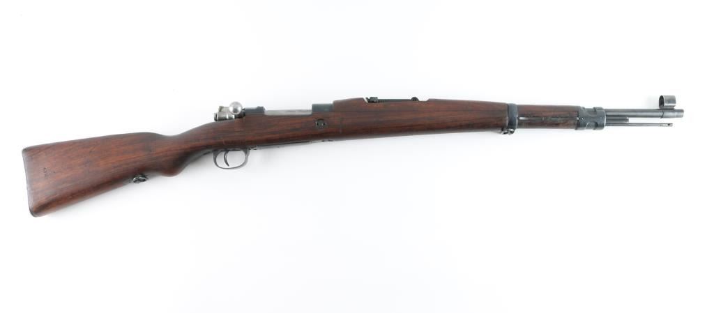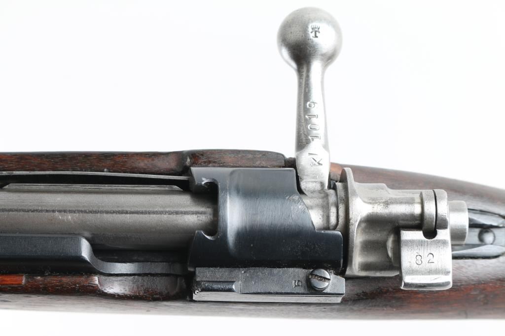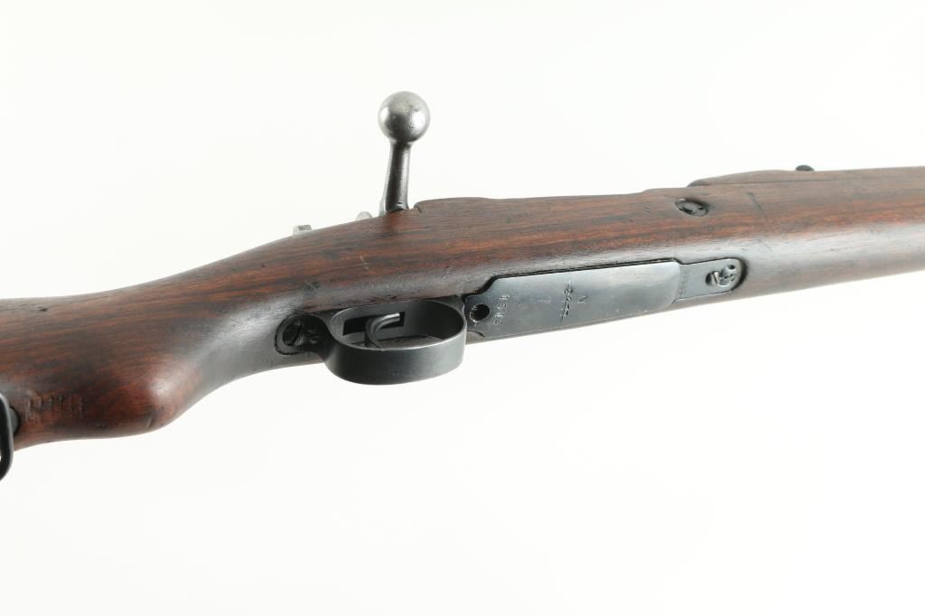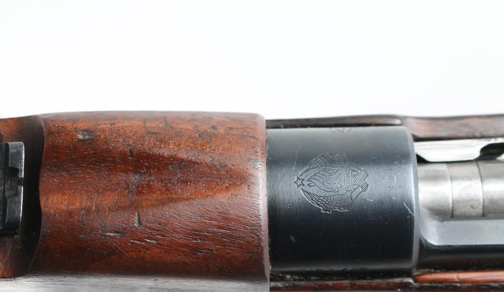 Yugoslavian post-WW2 update of the M24. Basically a K98. 24" barrel, with tangent rear, and hooded blade front sights. Clip fed 5 rd integral box magazine. Yugo Crest on receiver ring. Straight bolt. Original matching serial #s on receiver, floor plate, stock, and bolt (Same SN as Samco's) Imported by Samco, Fla, marked on underside of barrel. Chrome bolt, with Mauser safety. Bore appears very good, strong rifling. Wood stock, and handguard are very good with the usual minor dings, steel butt plate. Cleaning rod present. Blued finish is about 96%, with edge wear, and minor sctraches. Arsenal refinished. NRA condition-Very Good. C&R Firearm