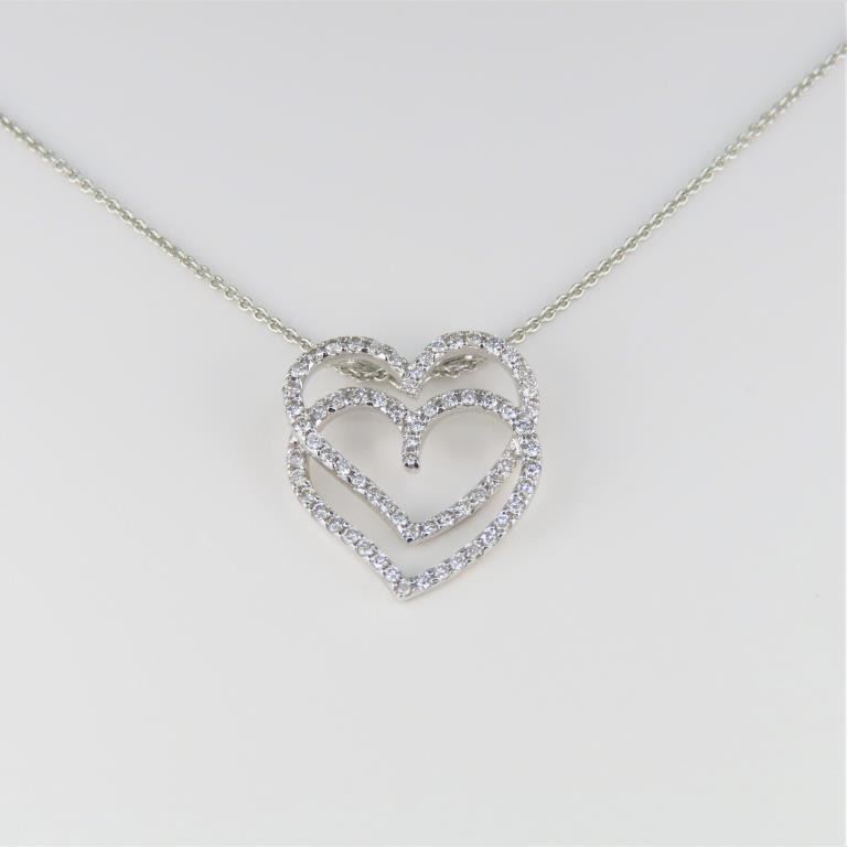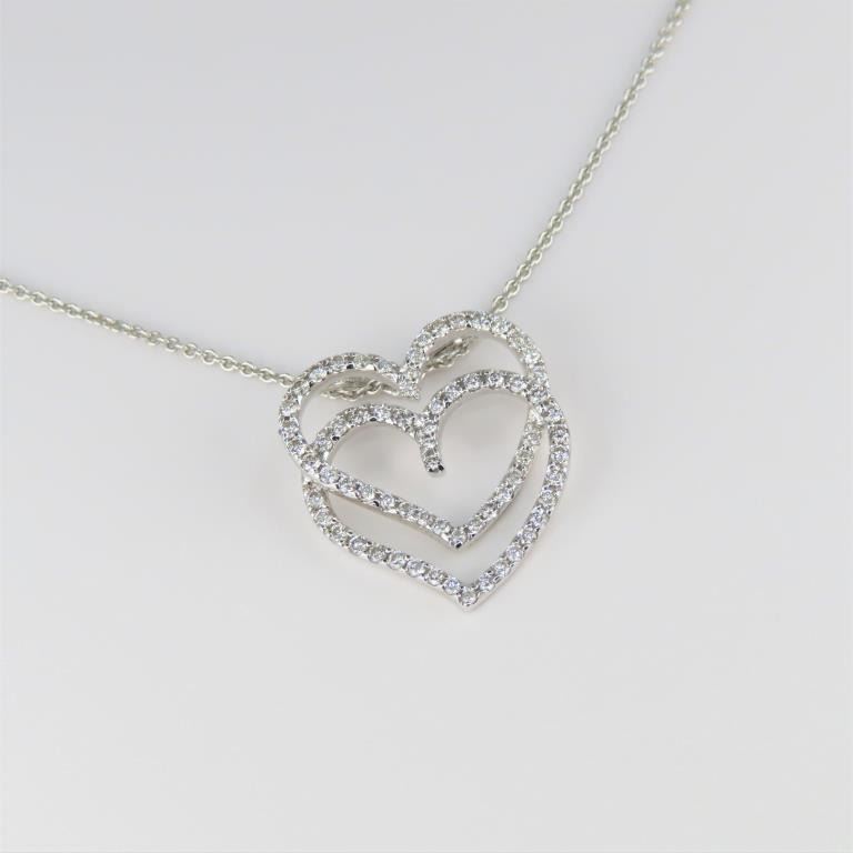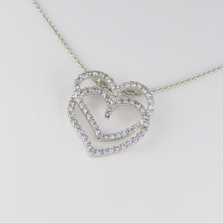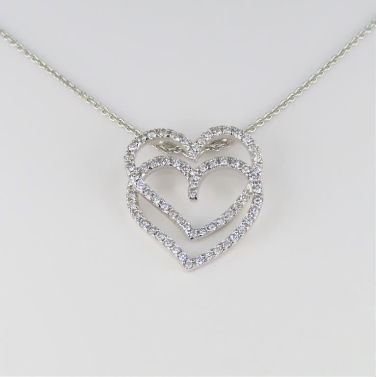 Diamond Pendant featuring over 68 round fine set ‘IDEAL’ cut Diamonds weighing approx. 1.00 carat with F-G colors and VS clarity set in white gold setting and Italian made chain. Retail $3,000-$4,000