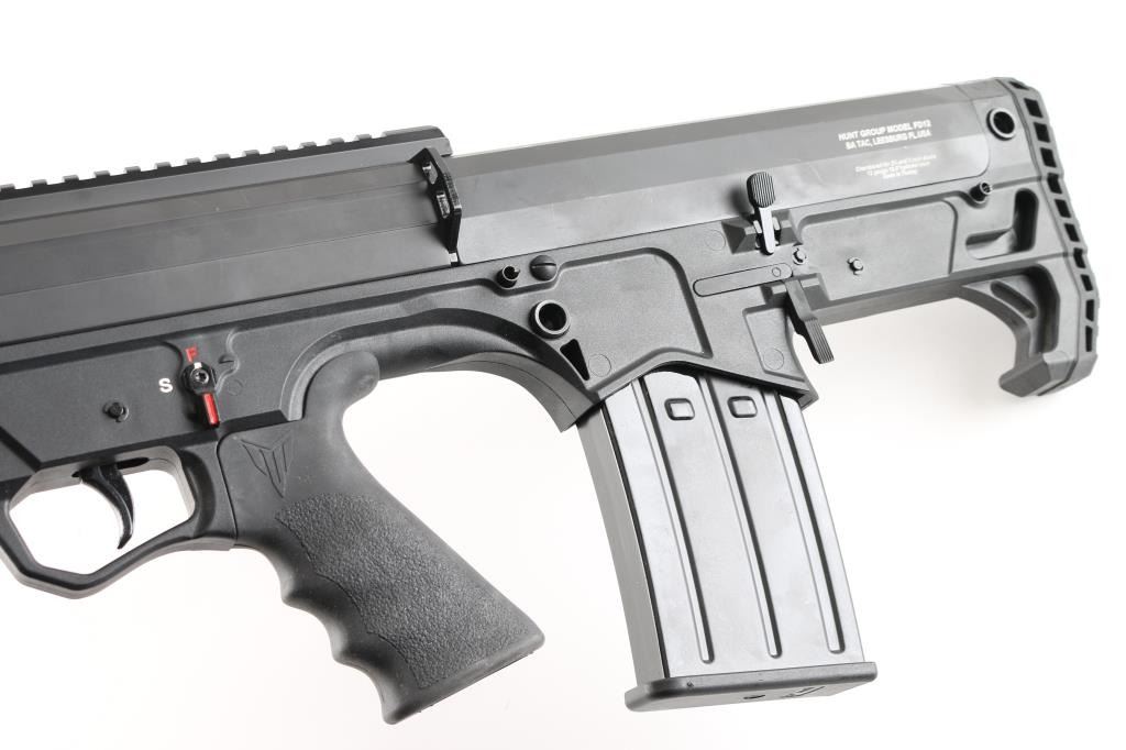 Manufactured in Turkey, imported by Black Aces Tactical. "Bull Pup" style Tactical shot chambered for 2 3/4", & 3" 12 Ga. shells. 18.5" barrel , Full choke insert,. vented handguard with integral accessory rails on top and bottom, manual safety, shell deflector attached, finger contoured grip, 5 rd magazine. 15" LOP. Comes in factory case, with extra magazine, manual, vertical fore grip, take-down tool, and two chokes, M, and CYL. Bore is pristine, like new condition. NRA Condition-Perfect in Box. Modern Firearm.