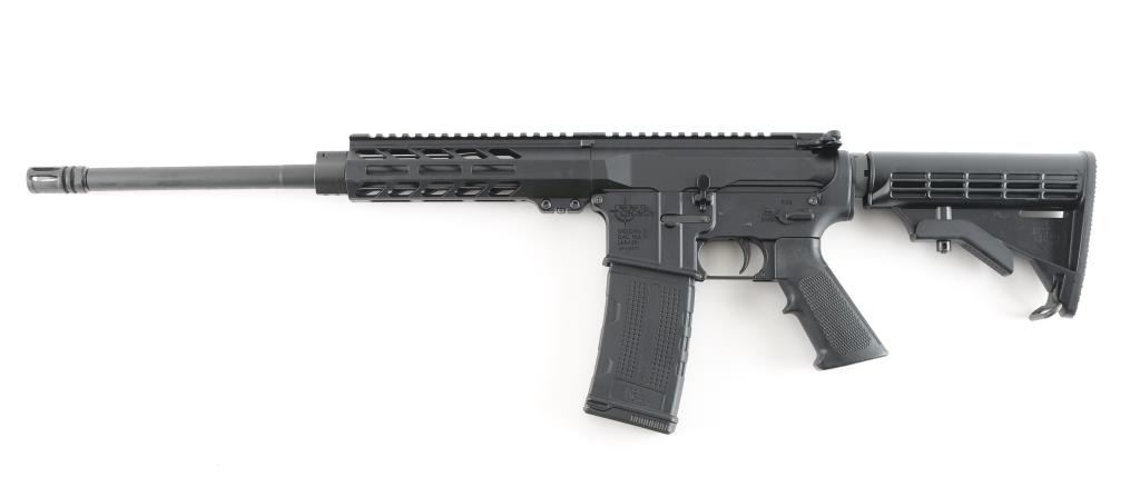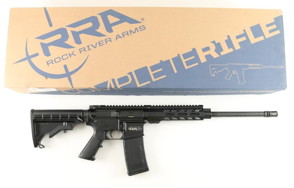 SN: AP118771 American made carbine features a 16" chrome Moly barrel, A2 flash hider, carbine length gas system, single stage trigger, A2 grip, RRA six position buttstock. Aluminum 7.5" free float handguard blends with the MS198132 top rail. M-LOK rail configuration. Bore is pristine, rifle is like new condition. Comes in factory box, with manual,and one RRA 30-rd magazine. NRA Condition-New in Box. Modern Firearm.