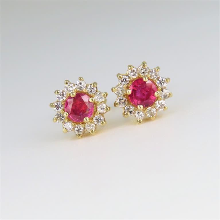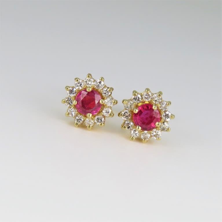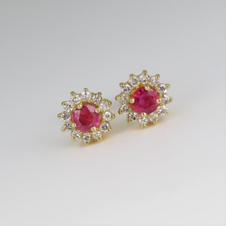 Lot 613a Beautiful Red Ruby and Diamond Stud Earrings