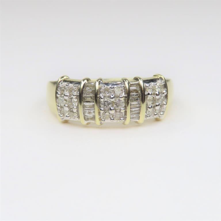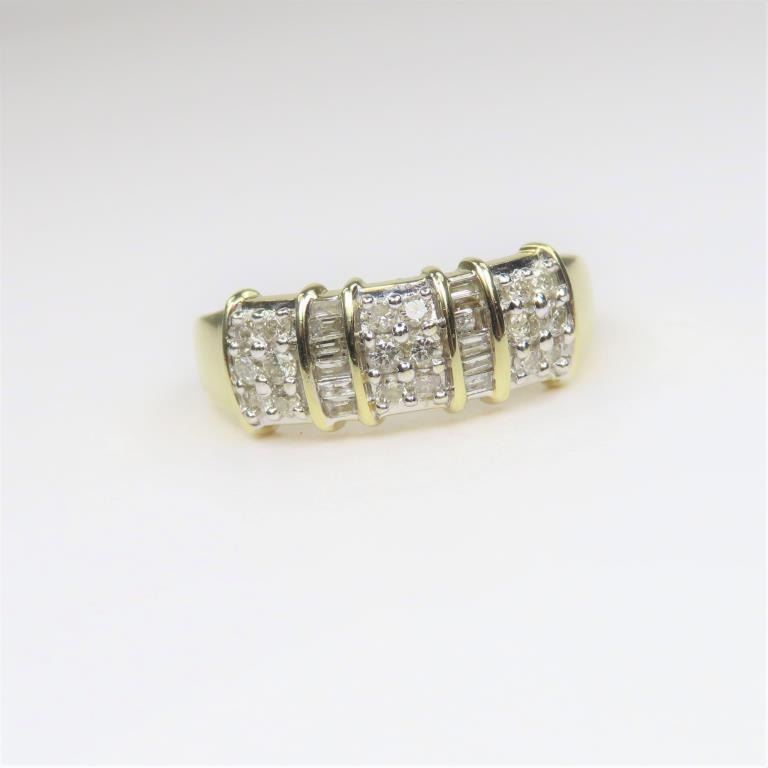 featuring 18 round and 10 baguette cut Diamonds weighing approx. 1.00 carat set in 10 karat yellow and white gold.