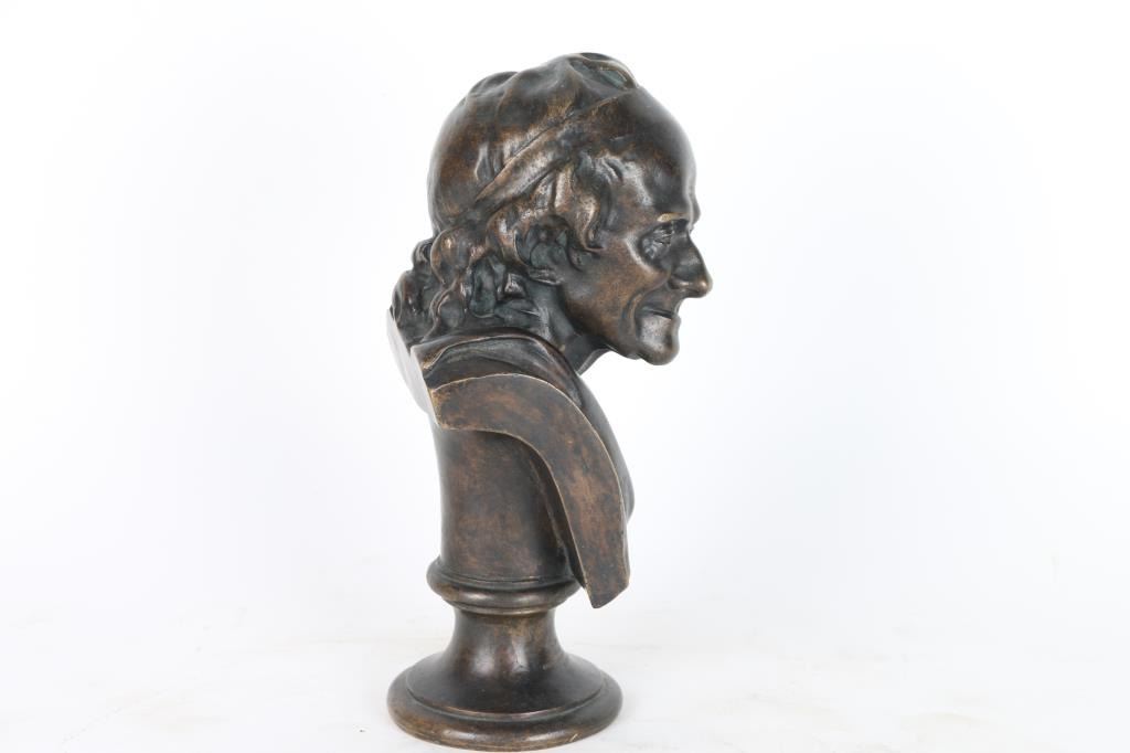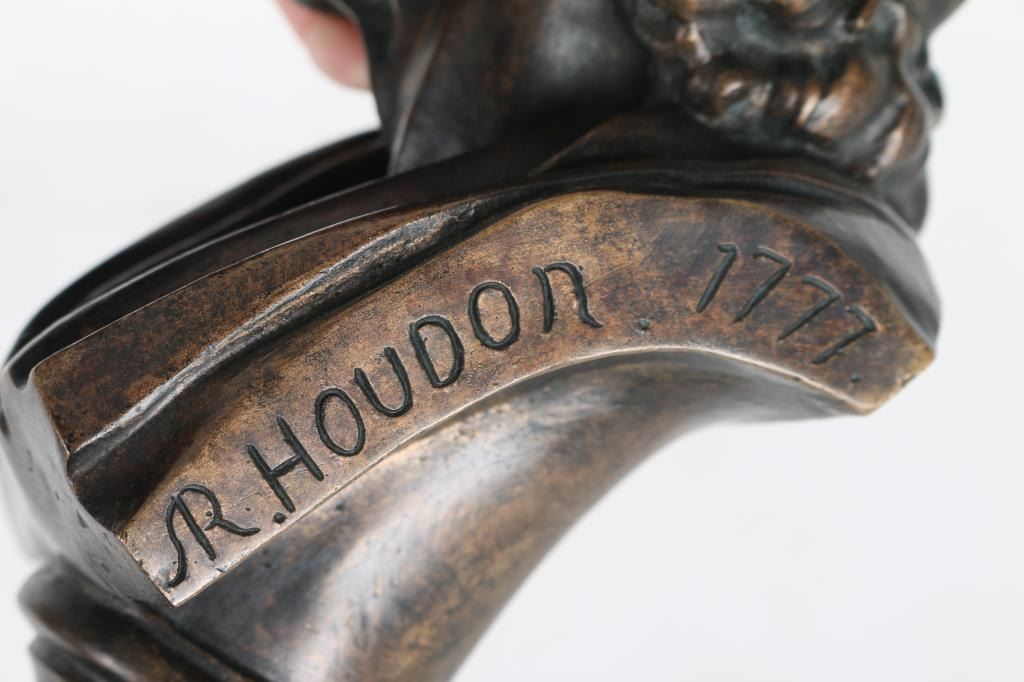 By Jean Houdon entitled "James Roosevelt" dated 1731-1828 , signed in bronze 1777. Measures 12"x5"x4" Jean-Antoine Houdon (1741 - 1828) was active/lived in France. Jean Antoine Houdon is known for Neo-classical portrait bust and statue sculpture..