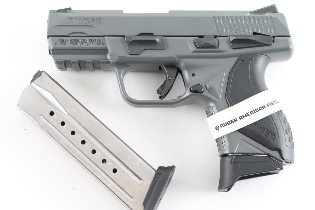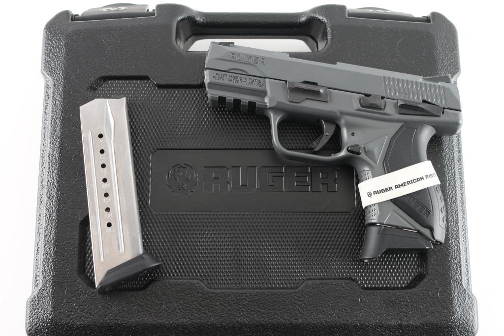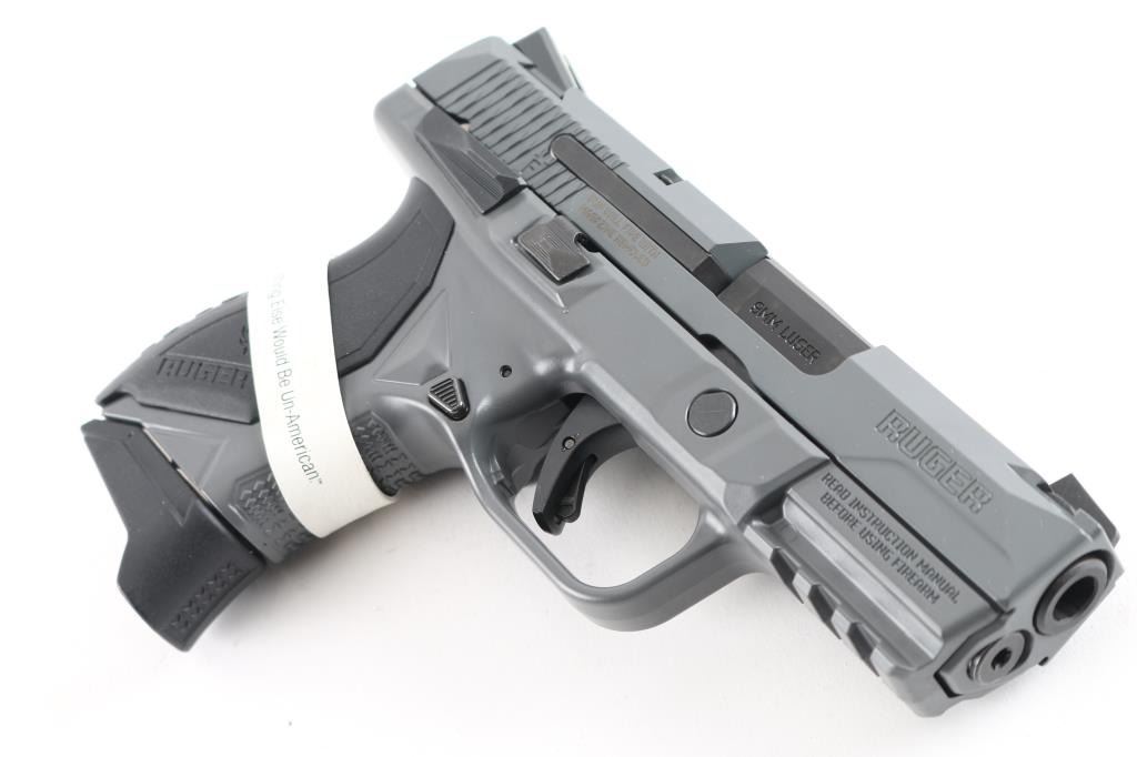 Striker fired semi-automatic compact pistol rated for 9x19mm +P ammunition, manufactured in Prescott, AZ circa 2021. Features a elite concrete cerakote, 4.2” barrel with loaded chamber inspection port, dovetailed Novak LoMount Carry 3-dot sights, smooth steel trigger with integrated safety, ambidextrous push button magazine release, factory nickel-teflon plated 11 round steel magazine, ambidextrous slide stop, and glass filled nylon frame with 1913 accessory rail, textured front strap & interchangeable wrap-around grip module. Includes the original factory hard case with manual, lock, spare 16 rd magazine and two additional grip modules. Pistol retains all of its finish. Action is sound, the bore is excellent, needs cleaning, and the synthetic frame is fine. NRA Condition-Excellent. Modern Firearm.