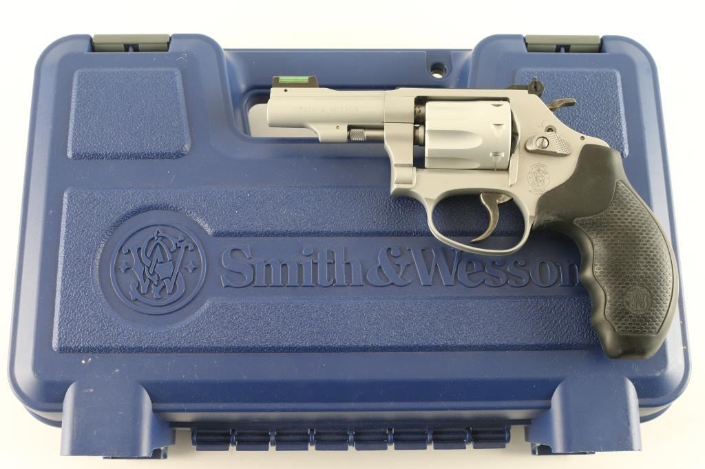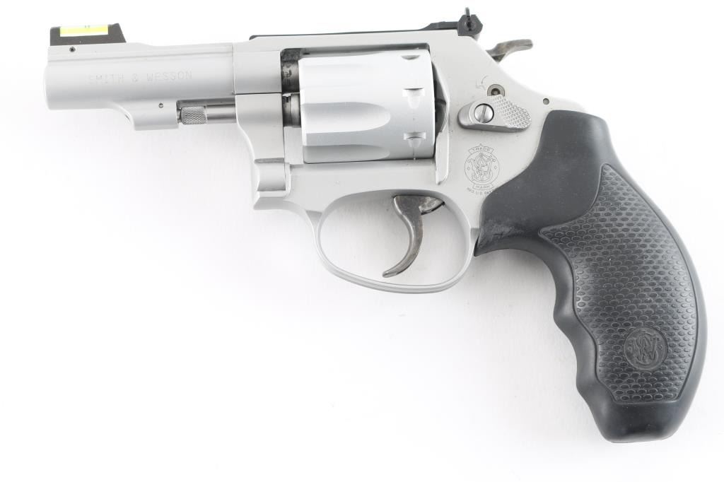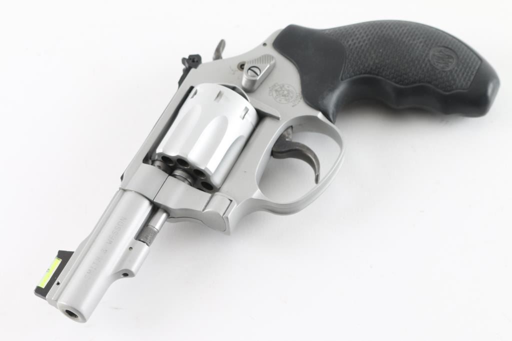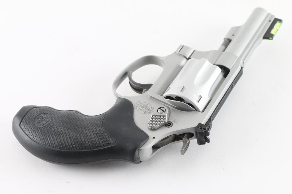 Double action 'Air-Lite' 8 shot revolver, 3" barrel, anodized alloy frame, adjustable rear sight, green fiber optic front sight, checkered finger groove rubber grips, excellent bore and action. Action is crisp/tight. Includes original blur factory box. NRA Condition-Near Excellent. Modern Firearm.