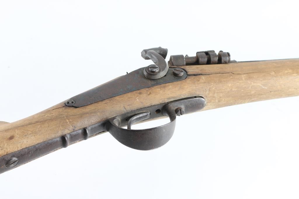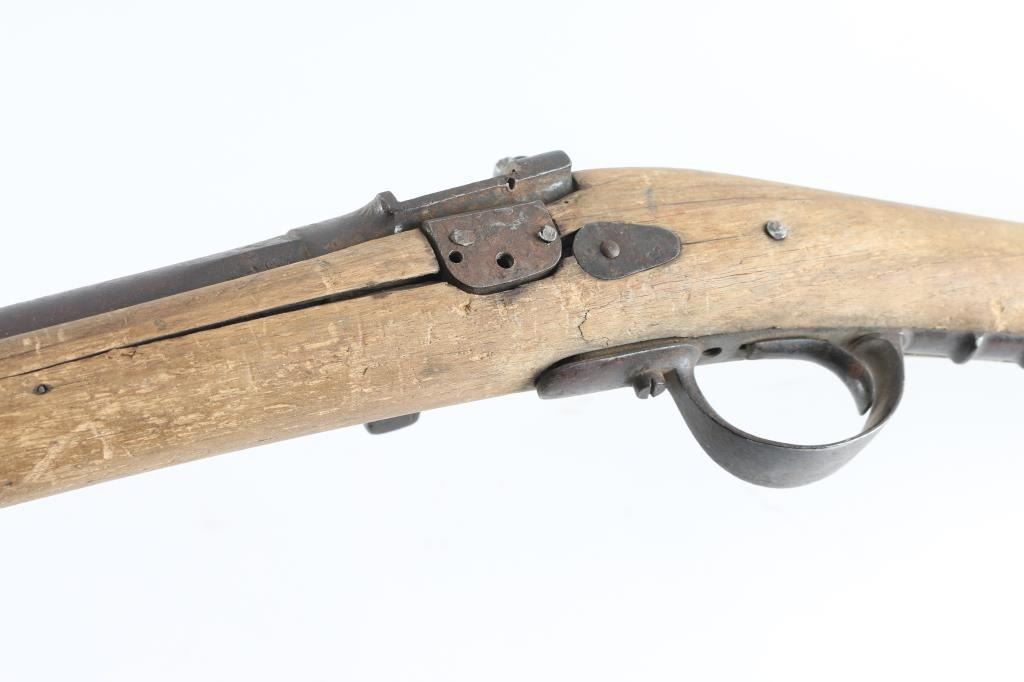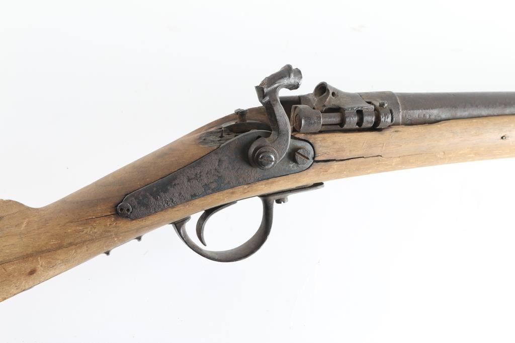 Converted from percussion to 12GA cartridge with a Snyder style side swing conversion. Relic-non working condition with breaks, losses, weathering and damage from frontier exposure and use. Collected in Dakota from the estate of Jim Aplan who loved attic or teepee finds. Antique Firearm NRA Poor/Fair