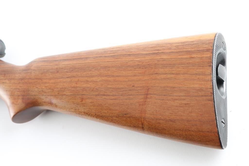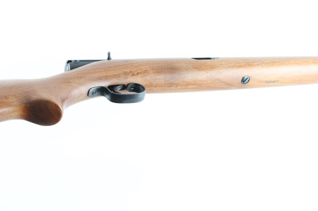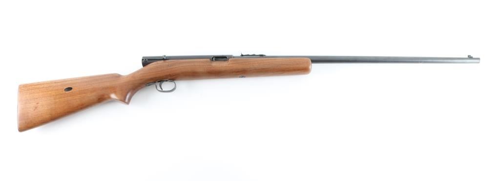 Semiautomatic rimfire rifle manufactured circa 1939. Features matte re-blued finish, wood stock, magazine tube in butt, blade front & sporting rear sights, 24" barrel, manual safety on top of receiver. Bore is very good condition. Retains 95% dark re-blue, nicely done without eroded letters in barrel marking, with edge losses and handling marks, rub mark on left side of receiver has bright texture (touched up?). Stock is very good condition, lightly sanded & clear coated. Condition is NRA Very Good (as refinished) *** C&R Firearm ***
