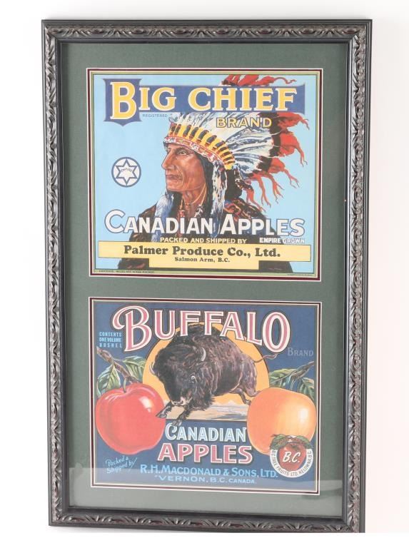 Reproduction Apple Advertiser, 23x14.5" outside dimensions of frame, in excellent condition