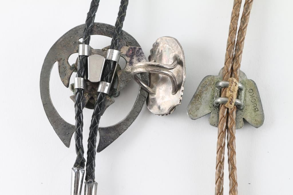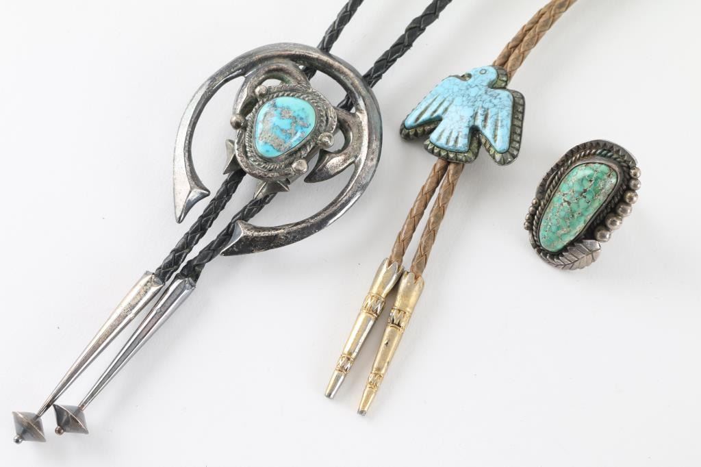 (1) Turquoise eagle bolo marked Bucko on back (1) Navajo Turquoise Bolo (1) Green turquoise & sterling