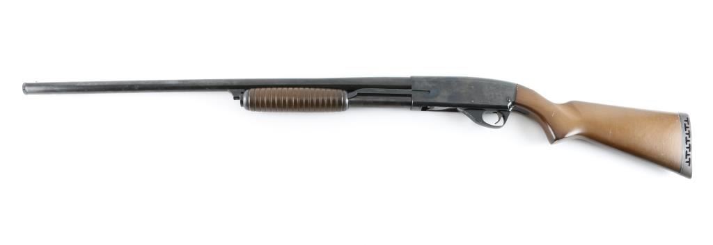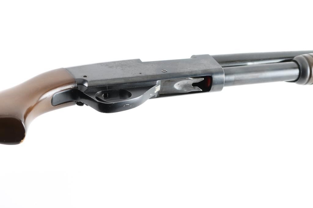 Stevens Model 67 Series E pump action shotgun, 12 gauge, 28” barrel, 2 3/4" & 3" chamber, full choke. 14 1/4" LOP. Brass sighting bead, sliding tang safety. Ribbed forearm, with smooth stock, rubber recoil pad. Blue has dulled somewhat but is mostly all there, the black painted triggerguard is scraped, bore is excellent, action is smooth, wood is very good with a few minor scratches/chips. NRA Condition-Very Good. Modern Firearm.
