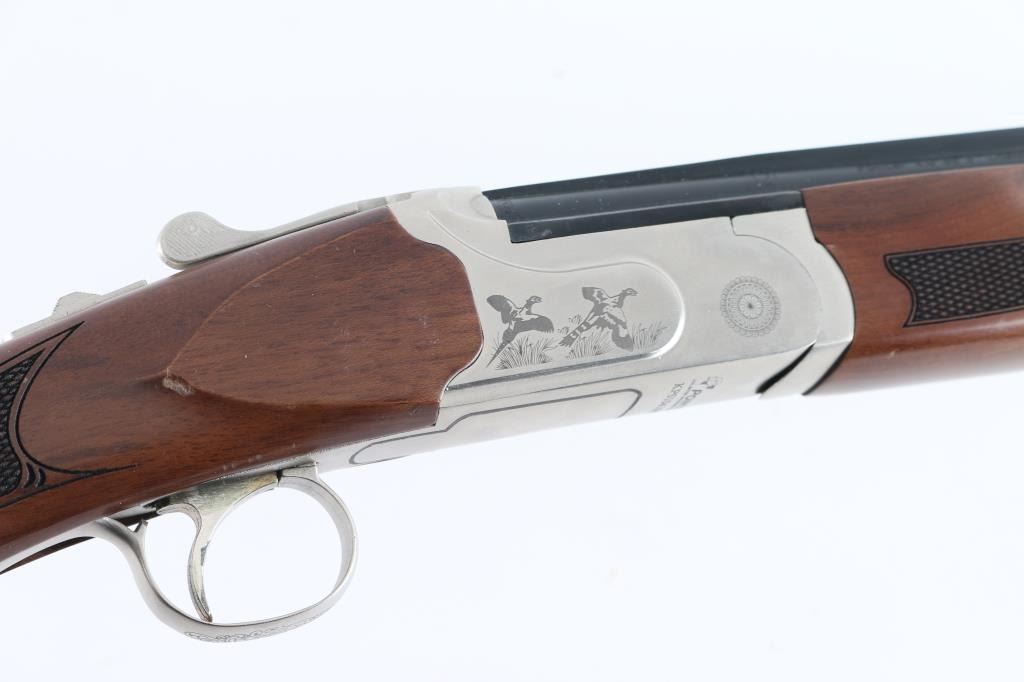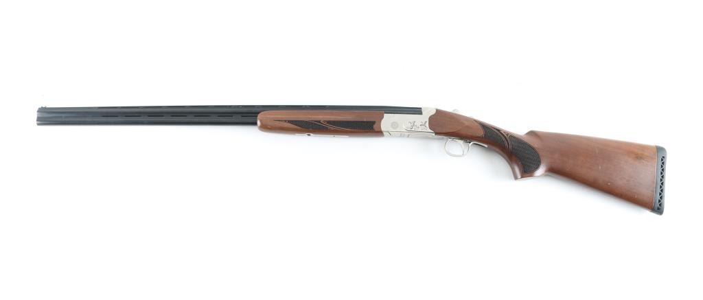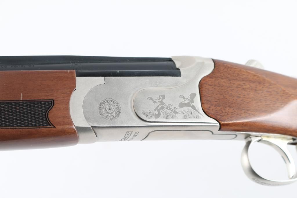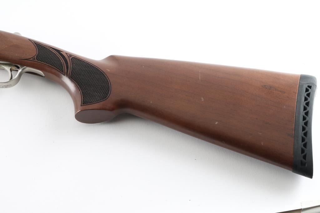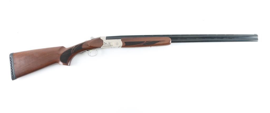 Turkish made lightweight O/U shotgun, imported by Legacy Sports, Reno, NV. 26" ribbed, blue barrels with green fiber optic sight, nickel plated receiver with bird scene, single, select fire,auto reset safety on tang. Chrome Moly lined bores. Turkish walnut stock, black rubber recoil pad. 3" chamber, Full chokes, LOP is 14".Barrels lock up tight, lower bore is very good/bright, same with the upper bore but has an area of pitting above the chamber. Finish is very good with minor edge wear, scratches. Wood is very good with minor scratches/dings. NRA Condition-Fair/Pitted Bore. Modern firearm