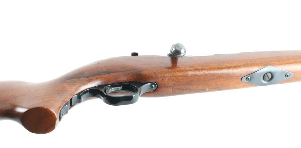 Manufactured pre 1968. Bolt-action. 24” barrel and full-length magazine. Top of front sight is broken, still enough to sight. Manual safety. The rifle retains nearly all the blue finish with edge wear and handling marks. The smooth wood stock is in very good condition with small mars, scratches. The bore appears ok, but very dirty, the action is crisp and the markings are sharp. Condition is NRA Fair/Broken Sight. C&R Firearm