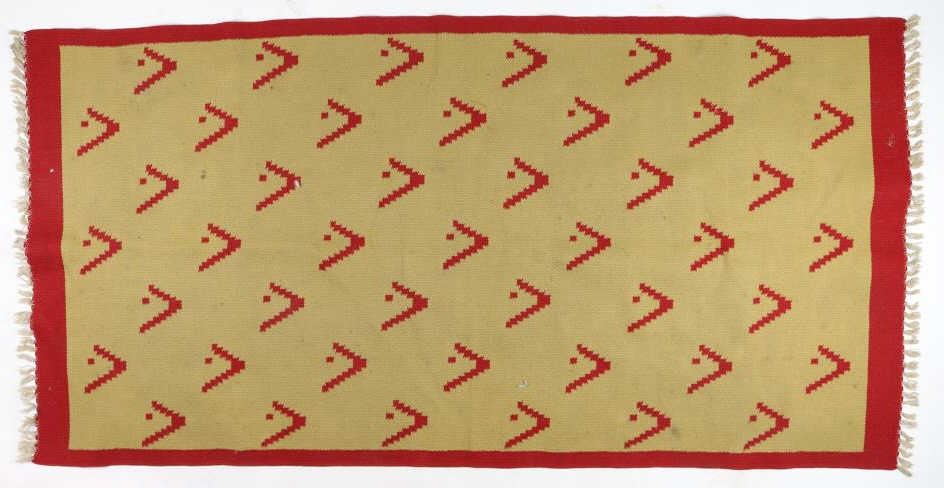 Yellow and red rug measures 68"x34"