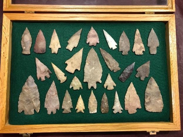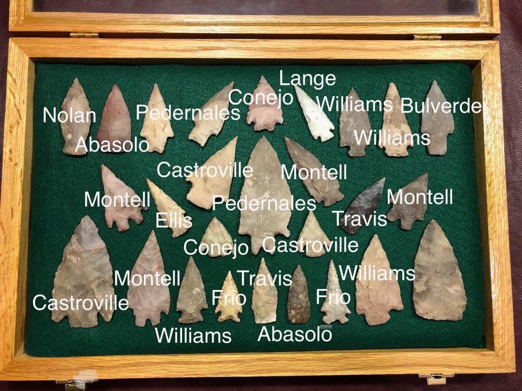 Amazing 27 piece North American Indian artifact collection. The beautiful spear points are from a private collection and were collected in Uvalde County, Texas on the Nueces River. All are from the middle to late archaic period, from about 6,000 to 2,600 years ago. The artifacts come to you mounted in a box frame. All points are in excellent condition.