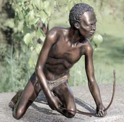 The sculpture depicts a bushman hunter who spots prey and kneels down.