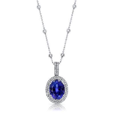Lot 5TN One Blue Violet Oval Natural Tanzanite and Diamond Necklace