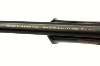 Upon the top of the 21.5" barrel in gold is "CHARLES LANCASTER.7.BURY STREET ST. JAMES'S .LONDON .ENGLAND."