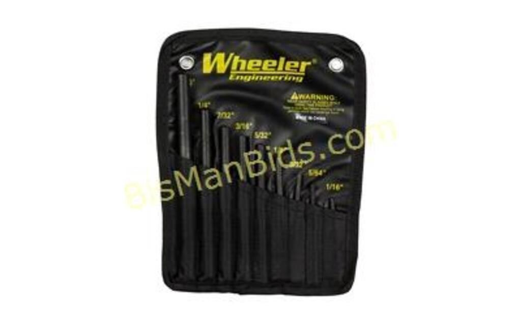 The Wheeler Engineering Roll Pin Punches are machined from hardened steel to prevent bending or breaking while driving any size roll pin. The punches are designed with a hemispherical tip to provide proper alignment of the roll pin to prevent damage to the roll pin and firearm. The 9 piece set includes: 5/16", 1/4", 7/32", 3/16", 5/32", 1/8", 3/32", 5/64",and 1/16" punches in a durable nylon sheath.