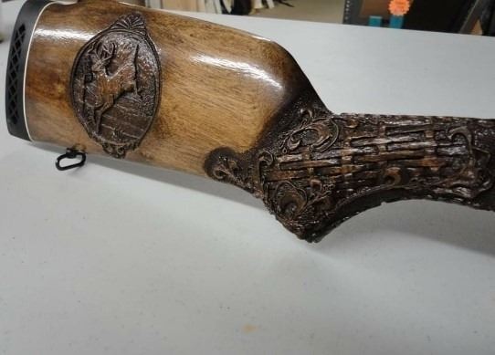 DONATION: A very special piece is going up for auction at Wild Sheep Foundation! This is one of the very first pieces I carved. After a deployment in 2009. Upon return from the desert, I came to Texas for training. I stopped on the way to visit a family friend Doyle Smith, a master engraver a Marine and an amazing person. I brought him a small carving as a gift. As I sat in his home, I was looking at all of his amazing rifles he had engraved. He told me nobody could engrave this stuff with just a Dremel and chisels, etc. We spoke about art and engraving. He asked me what I had in my hand. I gave him what I had brought. After careful examination of the piece, he asked quietly, "Did you carve this with a Dremel?" I responded, "Yes sir". With a tear in his eye, he looked around at all of his masterpieces and spoke, "You will be better than I'll have ever been in my lifetime!" We sat quietly as I still looked around. He then took me to his shop and showed me a few pointers. I left a rifle with him. After training I went back, and he had engraved my 270. I took that rifle on my first Aoudad hunt in New Mexico. Upon returning to cell service, I received a call that Doyle had passed away around the same time as I had taken my ram with the gun, he had engraved for me. I came home and finished this piece with a few chisels and a Dremel. "My first rifle piece a 270". In life we meet those that will change us forever and will spark our purpose, Doyle Smith was one of those to me. This piece is being auctioned on Friday Legacy Night. A fitting night and name for this is my Legacy Piece that started it all!