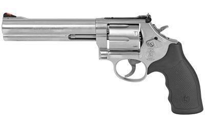 Smith & Wesson, Model 686, Double Action, Metal Frame Revolver, L-Frame, 357 Magnum, 6" Barrel, Stainless Steel, Satin Finish, Silver, Rubber Grips, Adjustable Rear Sight, 6 Rounds