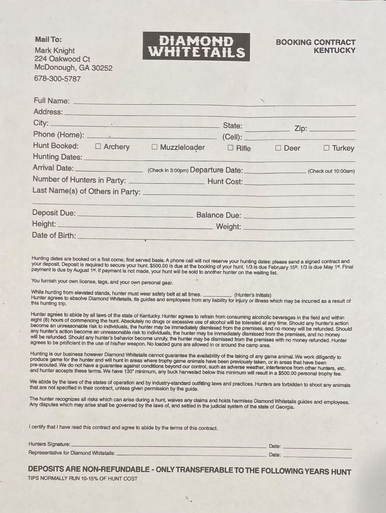 Extra hunters welcome at: $3500.00