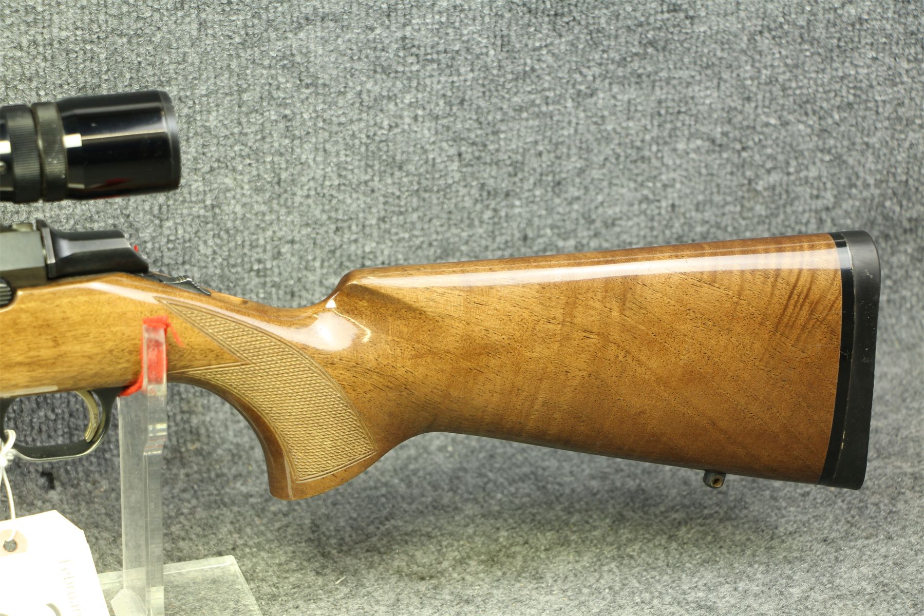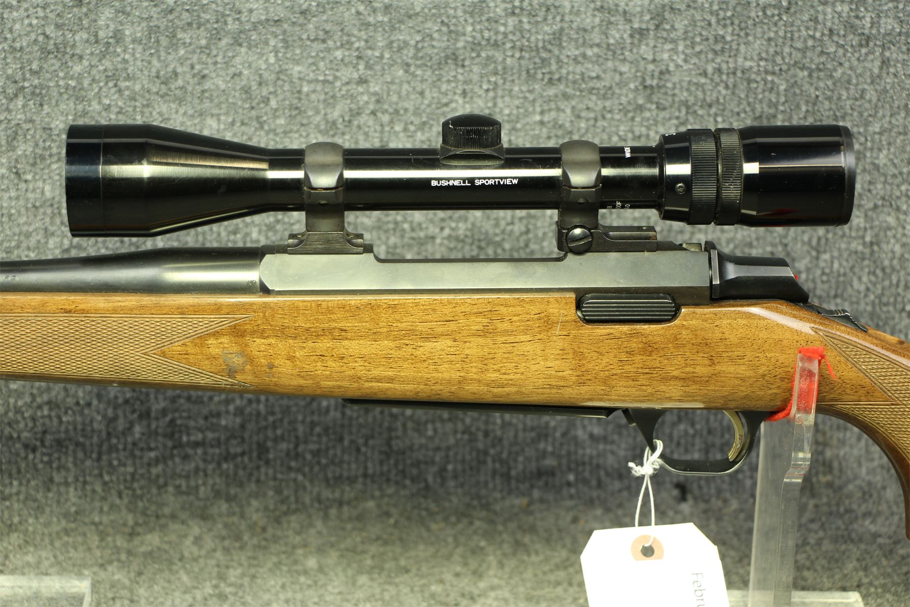 Very lightly used. Some scrapes on the right side of the stock. No rust nor cracks. Bushnell Sportview 3-9x scope with duplex crosshairs. Cut checkering.