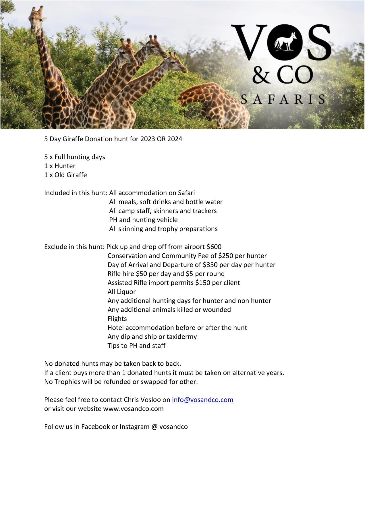 5 Day Giraffe Donation hunt for 2023 OR 2024[/b]