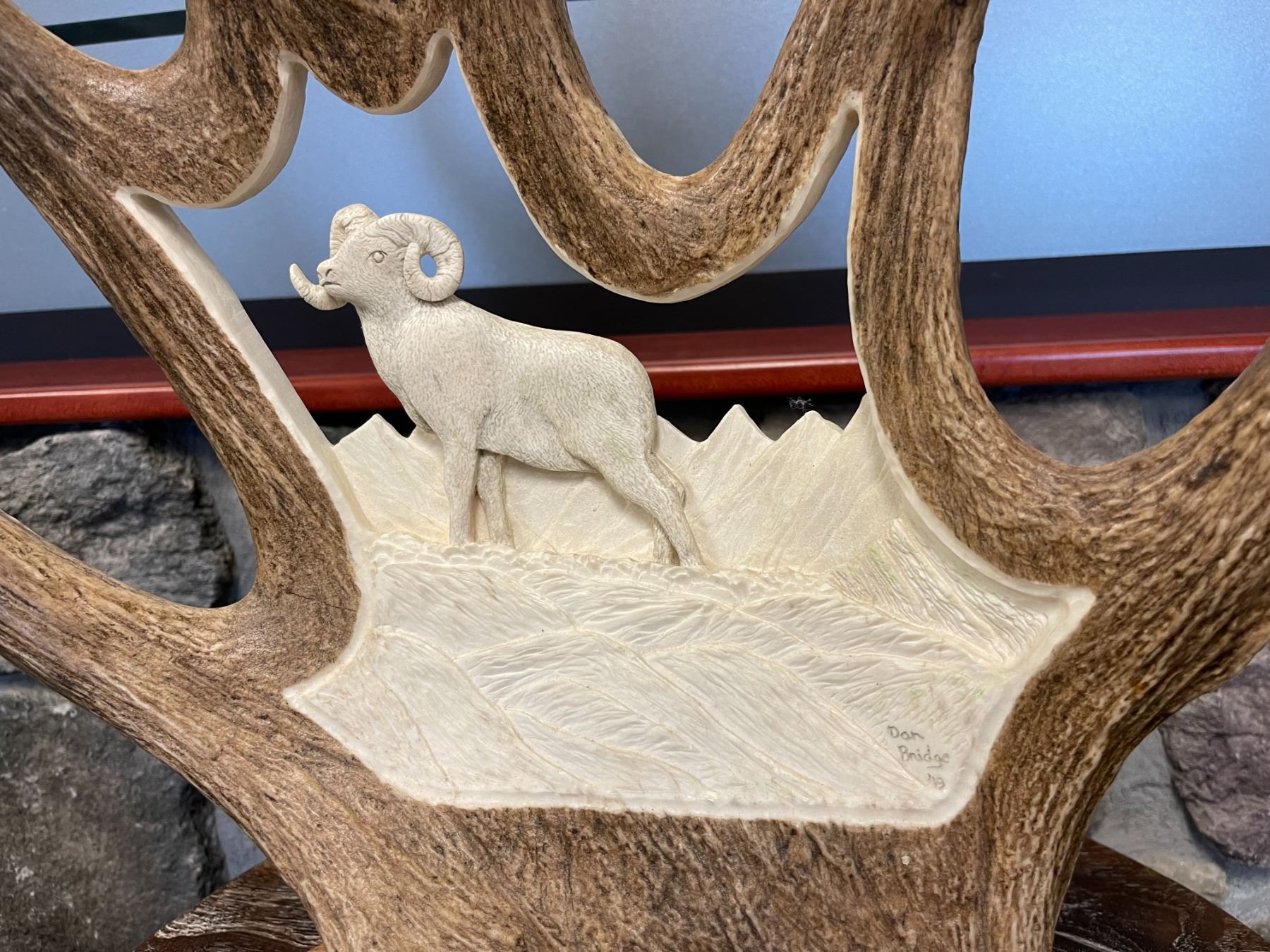 “Windy Ridge” antler carving by Dan Bridge.